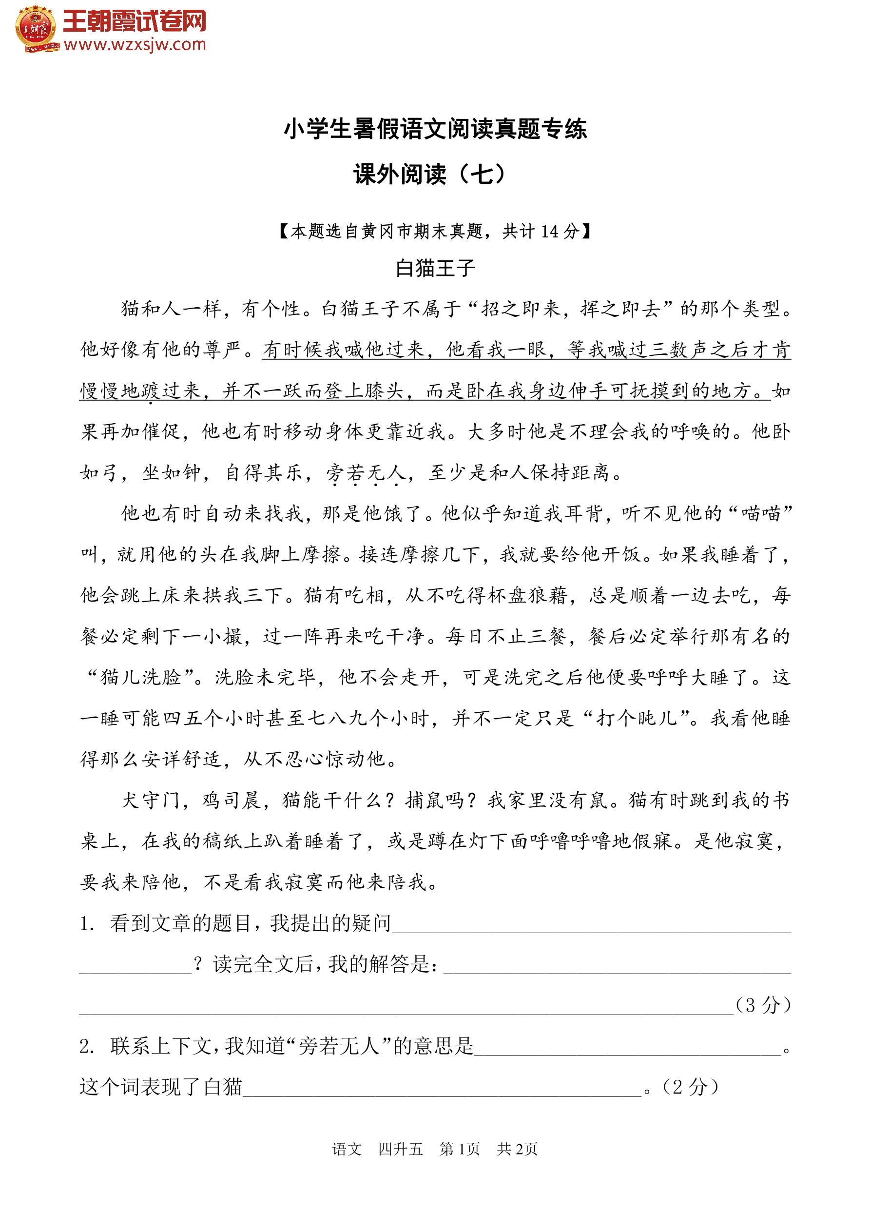 【四升五】小学生暑假语文阅读真题专练——课外阅读(七)