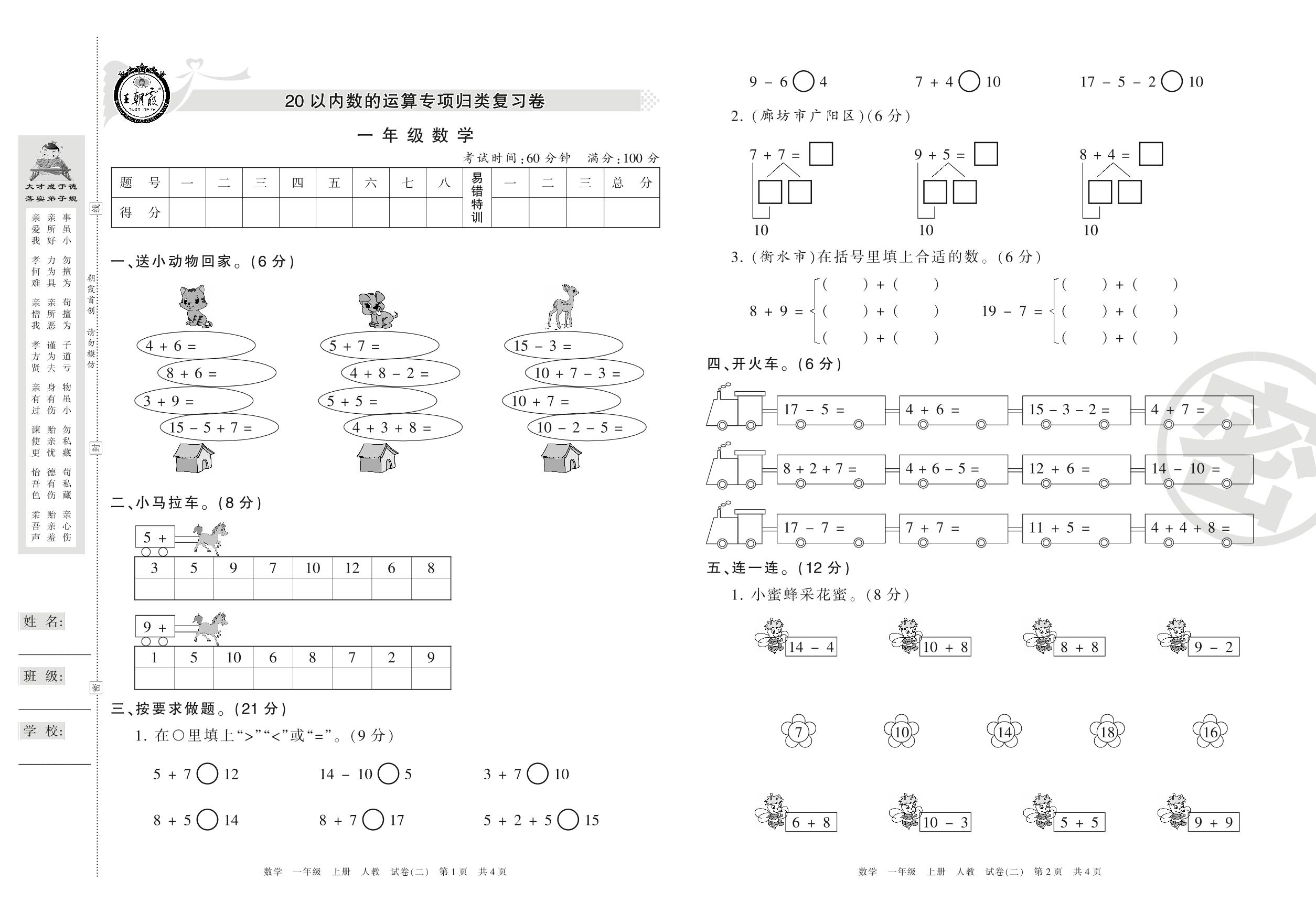 一年级数学人教版上册专项卷