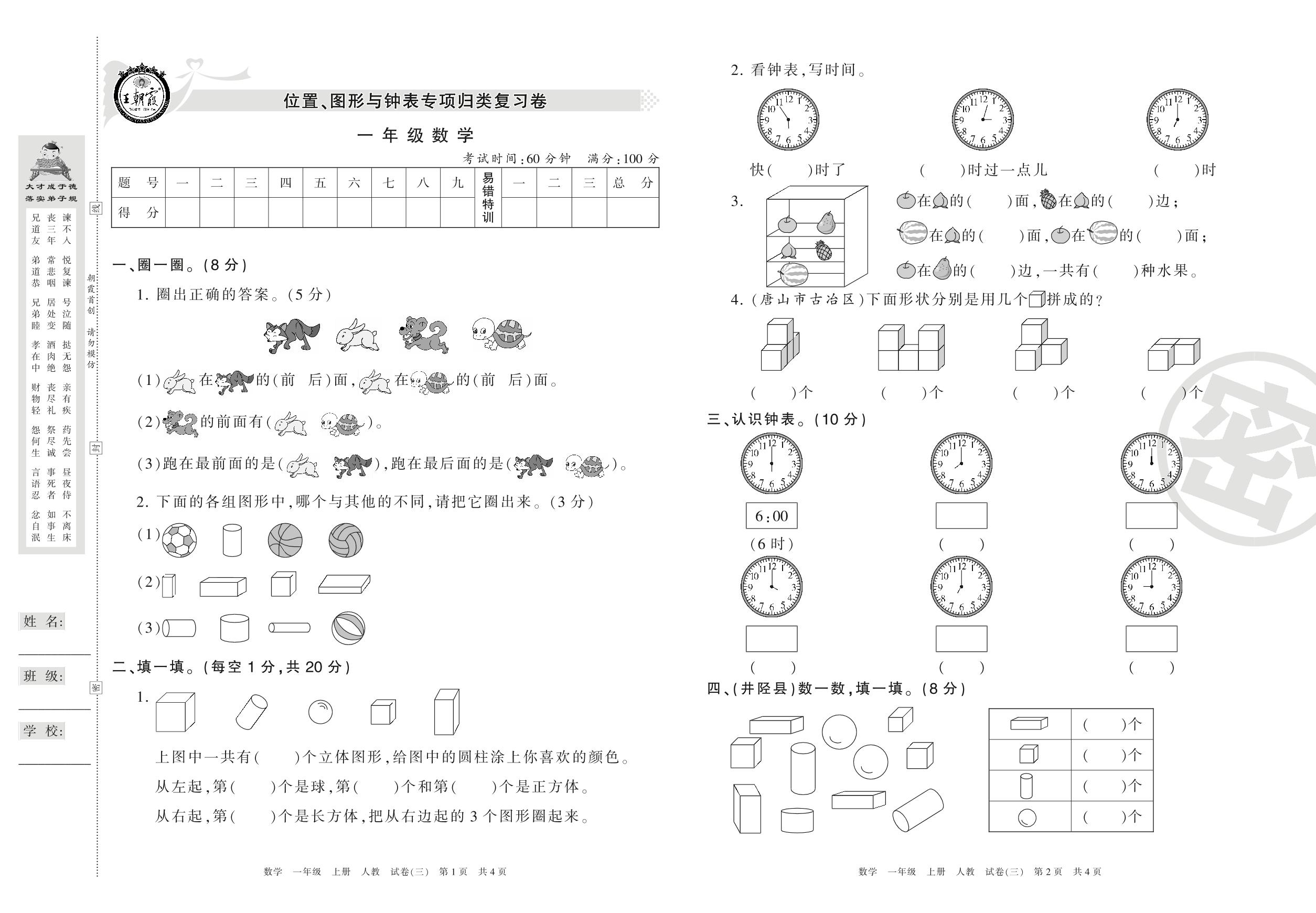 王朝霞期末专项卷一年级上册数学(人教版)_R210802223759【3】