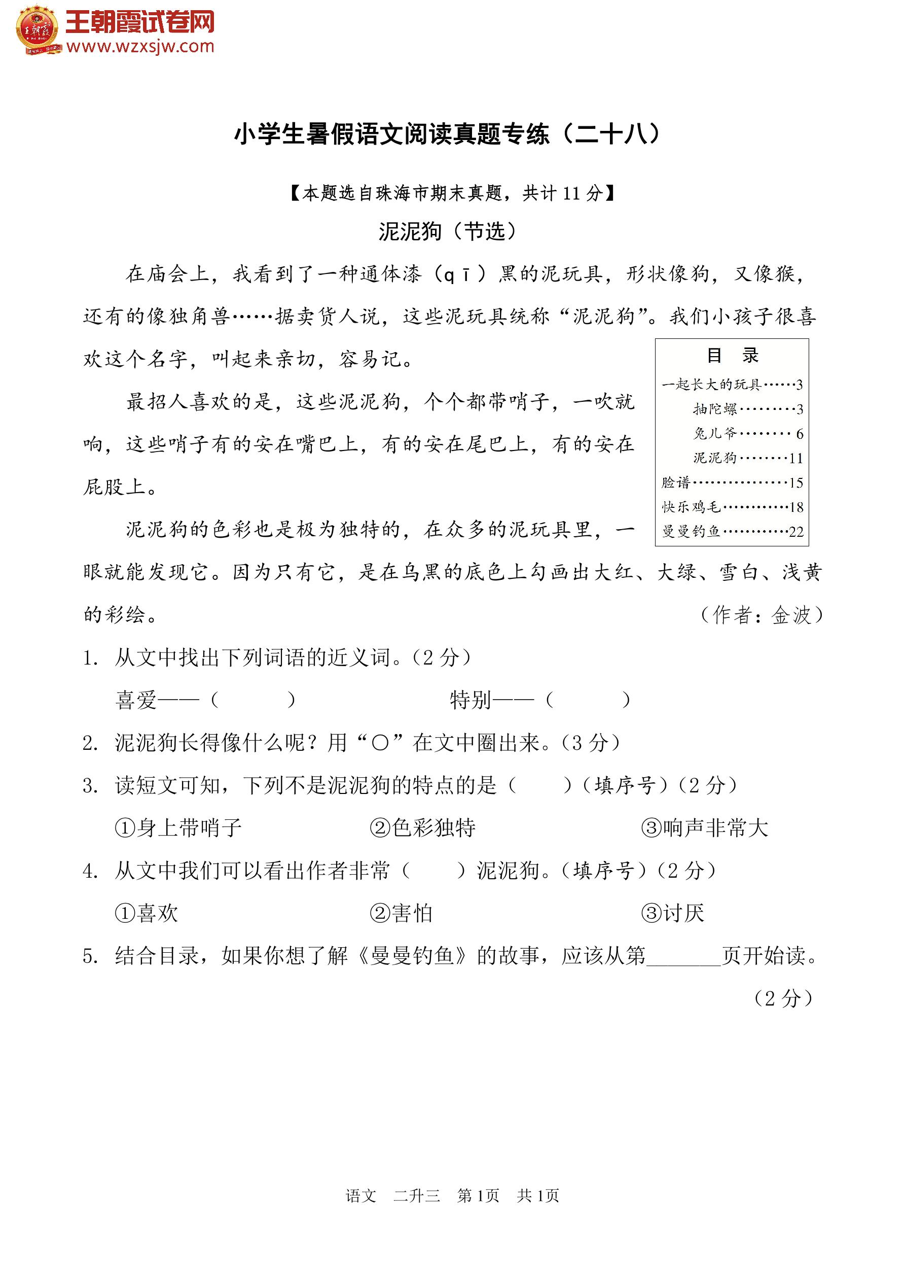 【二升三】小学生暑假语文阅读真题专练(二十八)