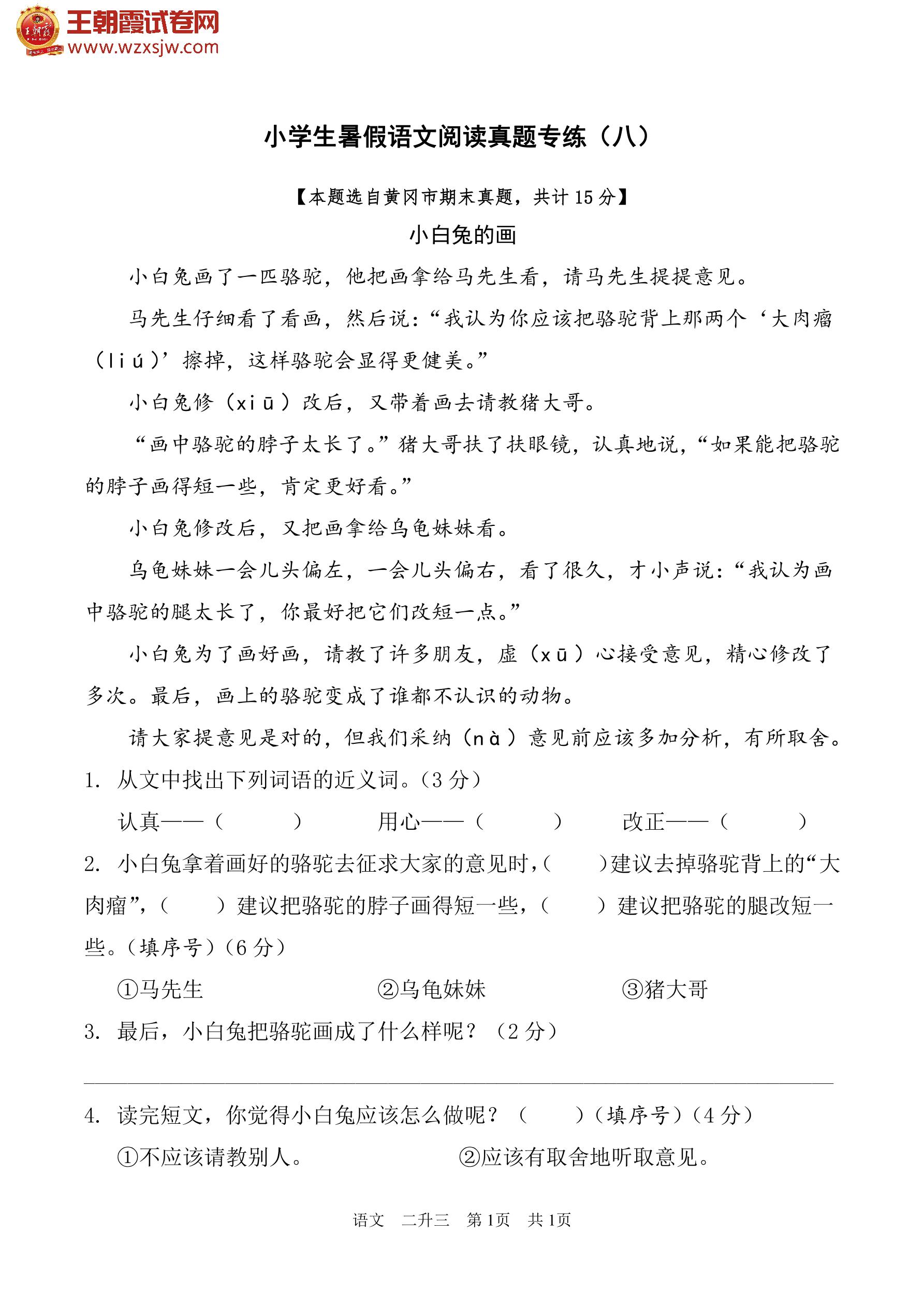 【二升三】小学生暑假语文阅读真题专练(八)