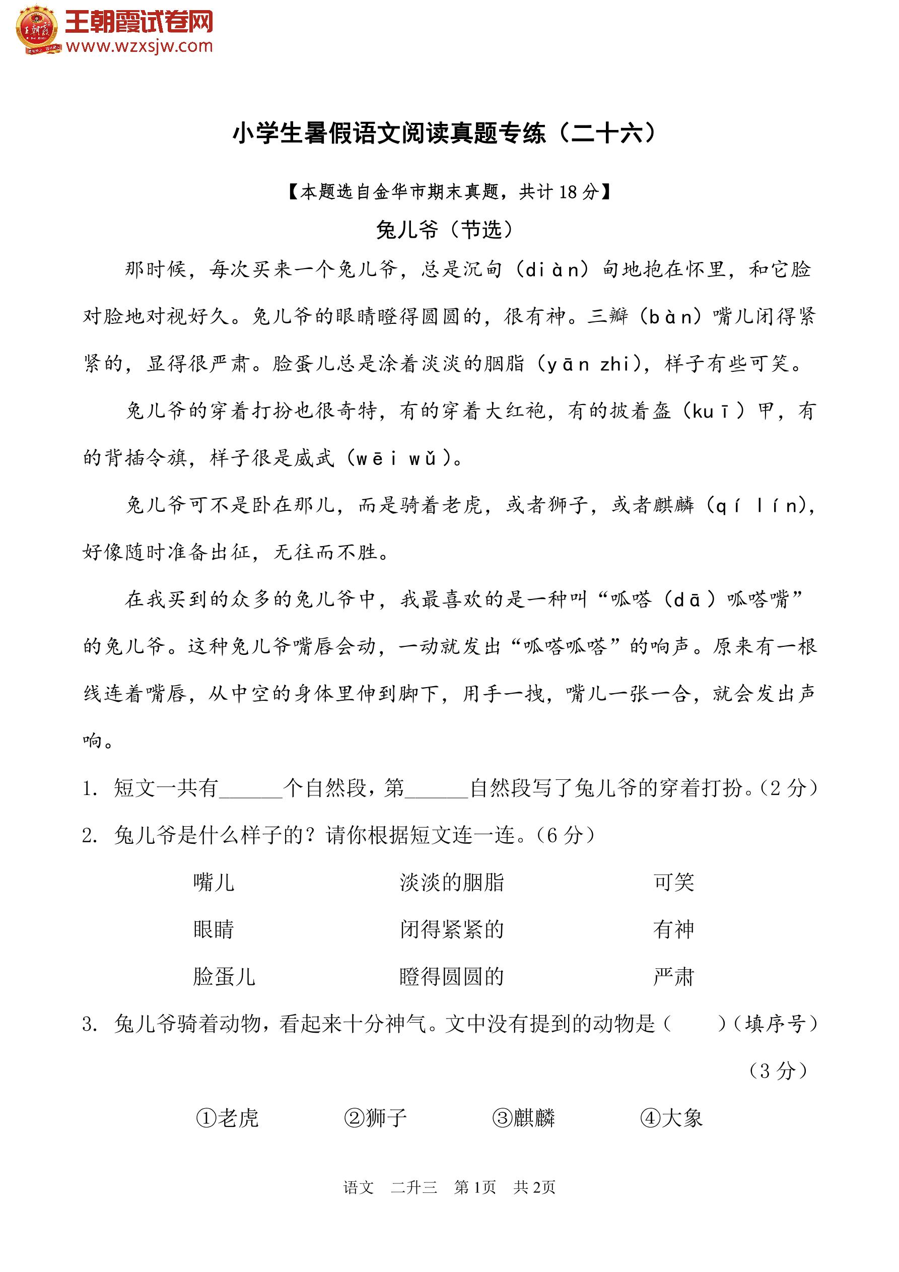 【二升三】小学生暑假语文阅读真题专练(二十六)
