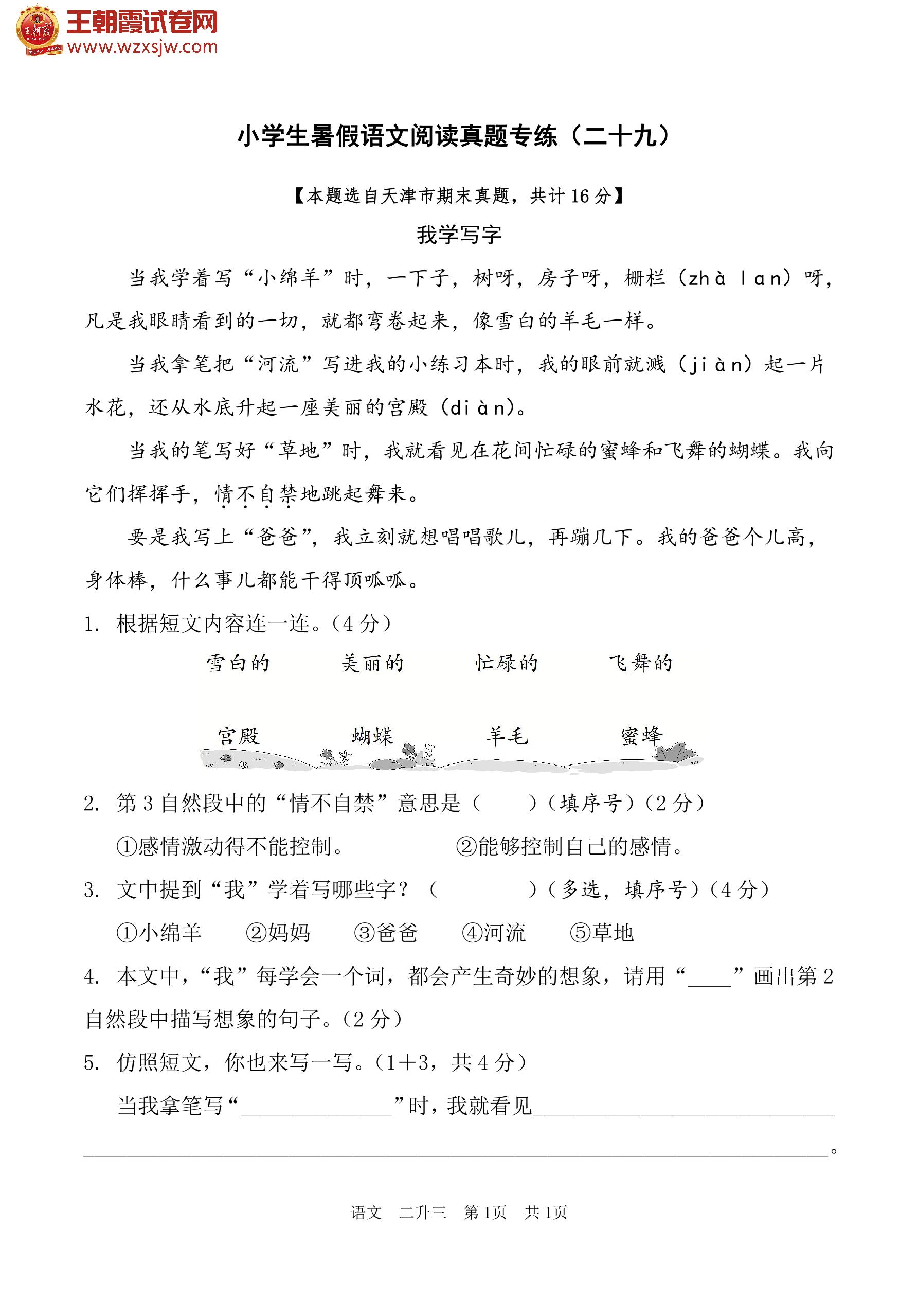 【二升三】小学生暑假语文阅读真题专练(二十九)