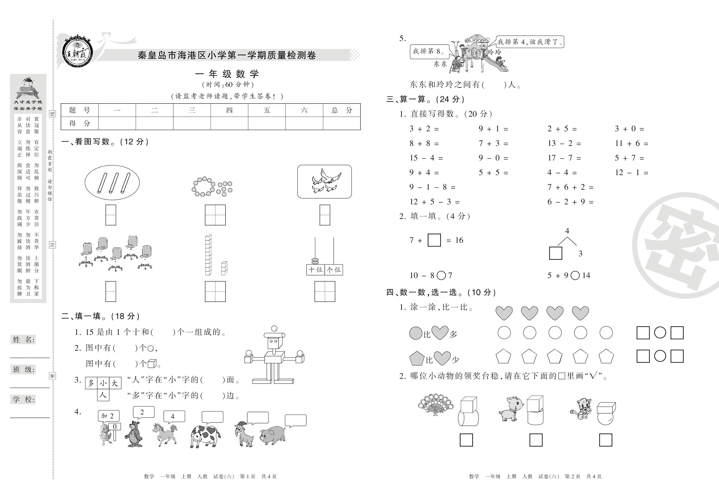 2016-2017学年第一学期秦皇岛市海港区一年级数学试卷(人教版)【6】