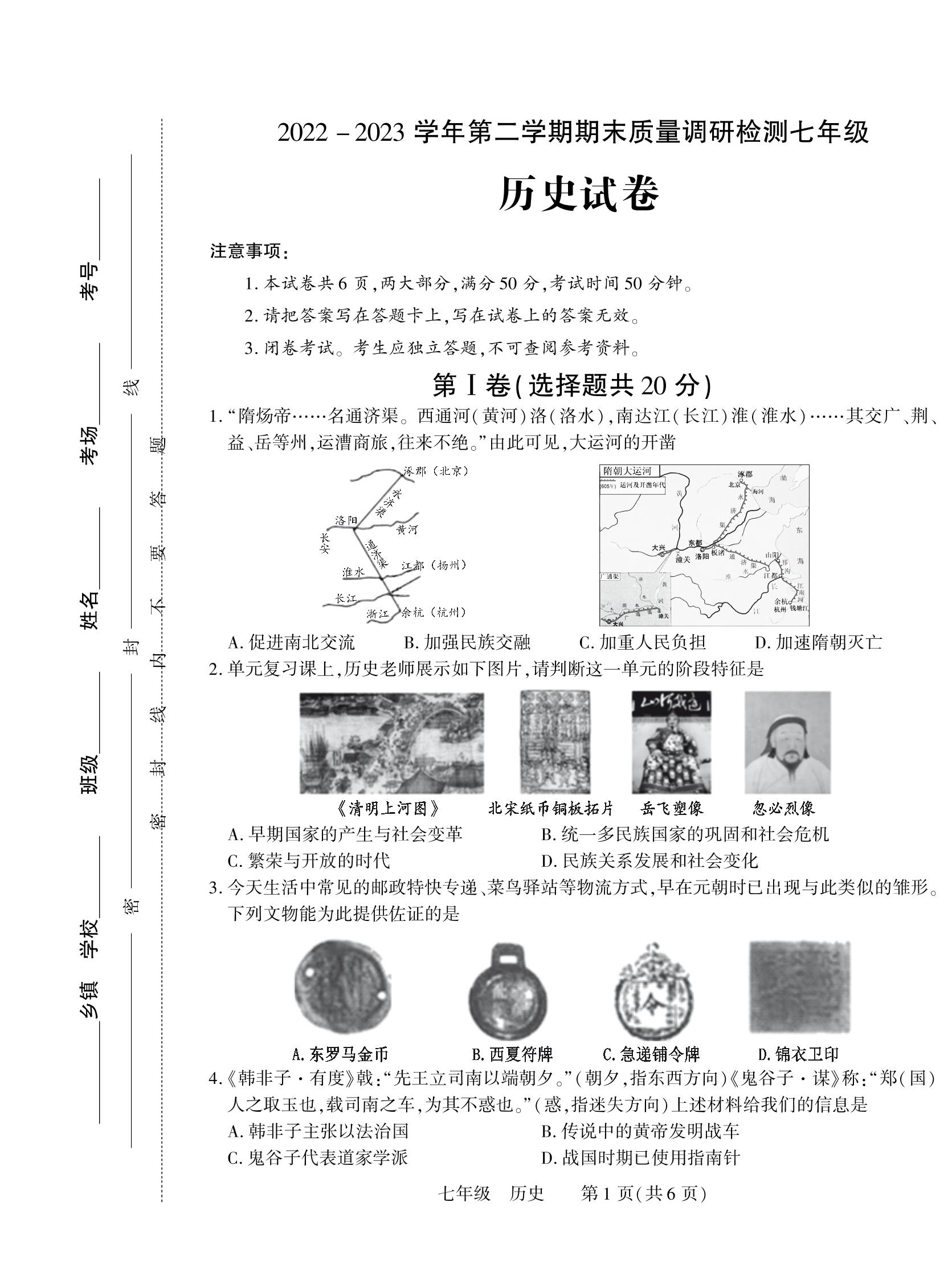 河南省洛阳市伊川县2022-2023学年第二学期期末质量调研检测七年级历史(人教版)