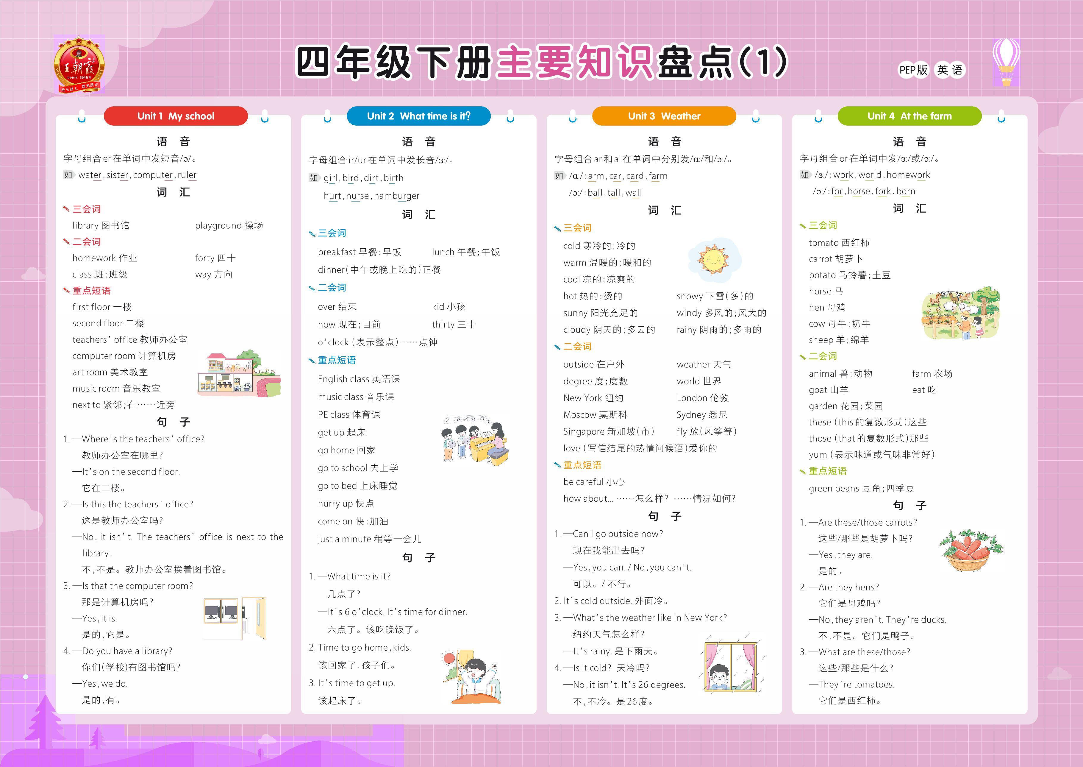 四年级英语人教PEP版(三起始)下册知识梳理