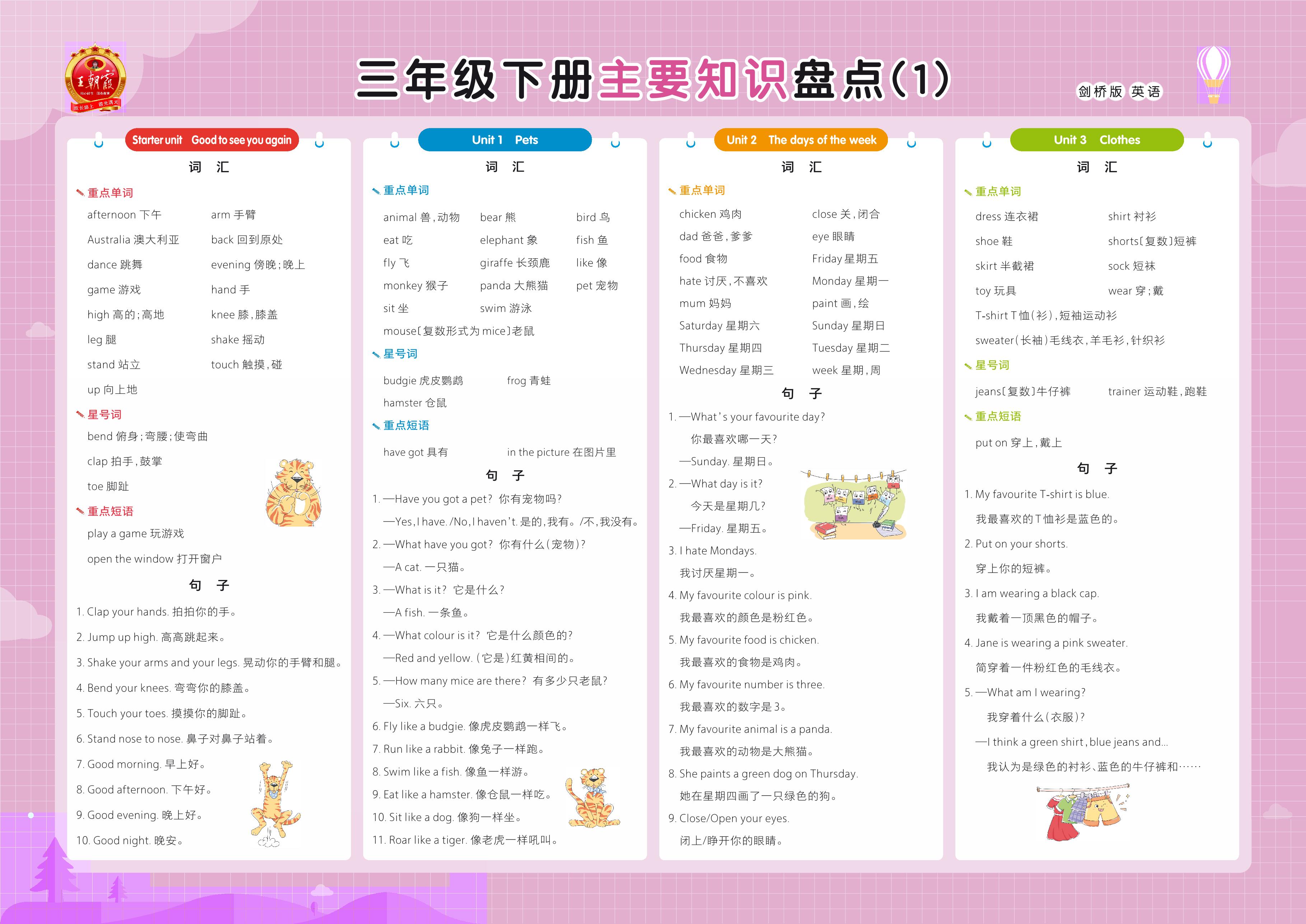 三年级英语剑桥版下册知识梳理