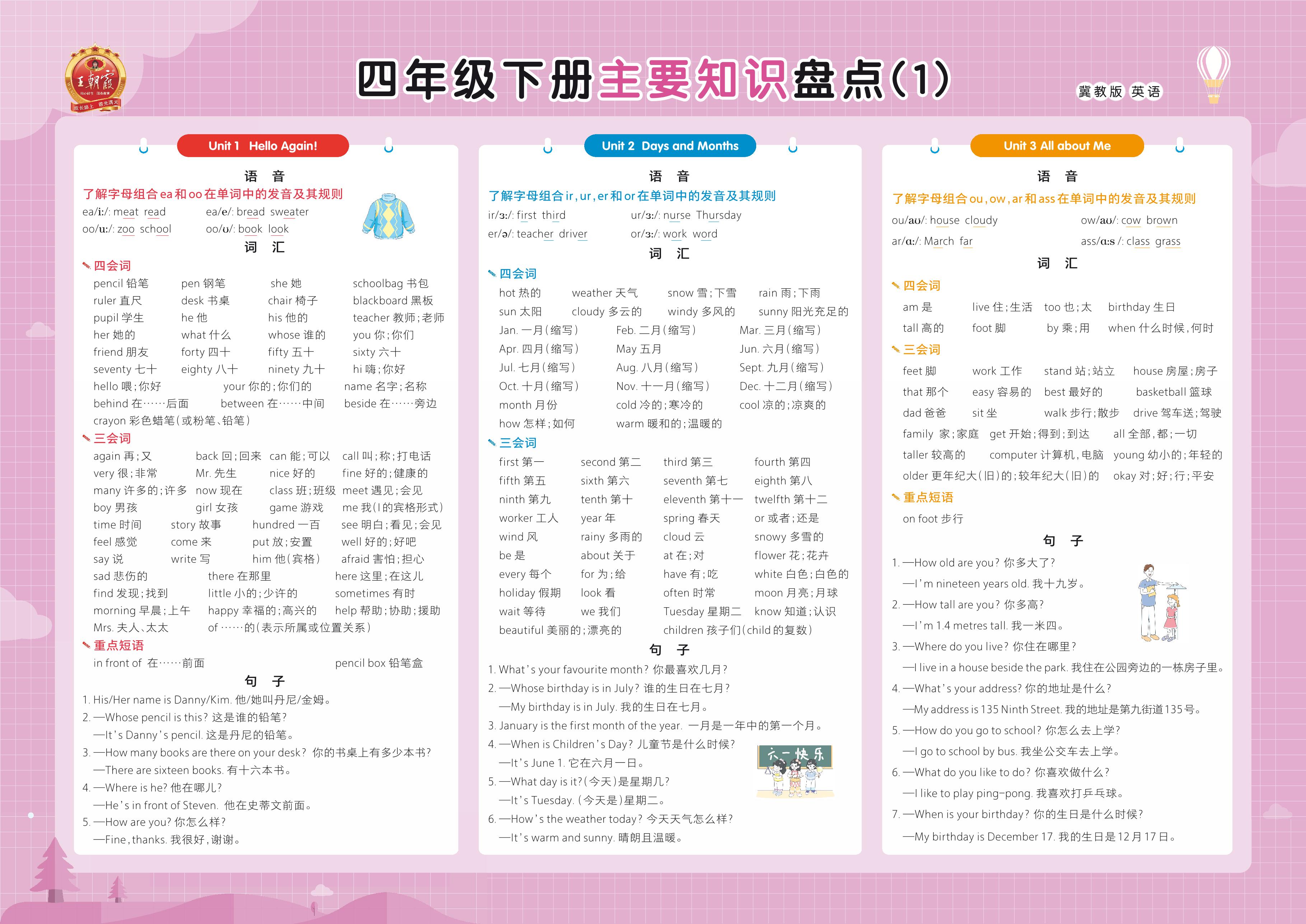 四年级英语冀教版下册知识梳理