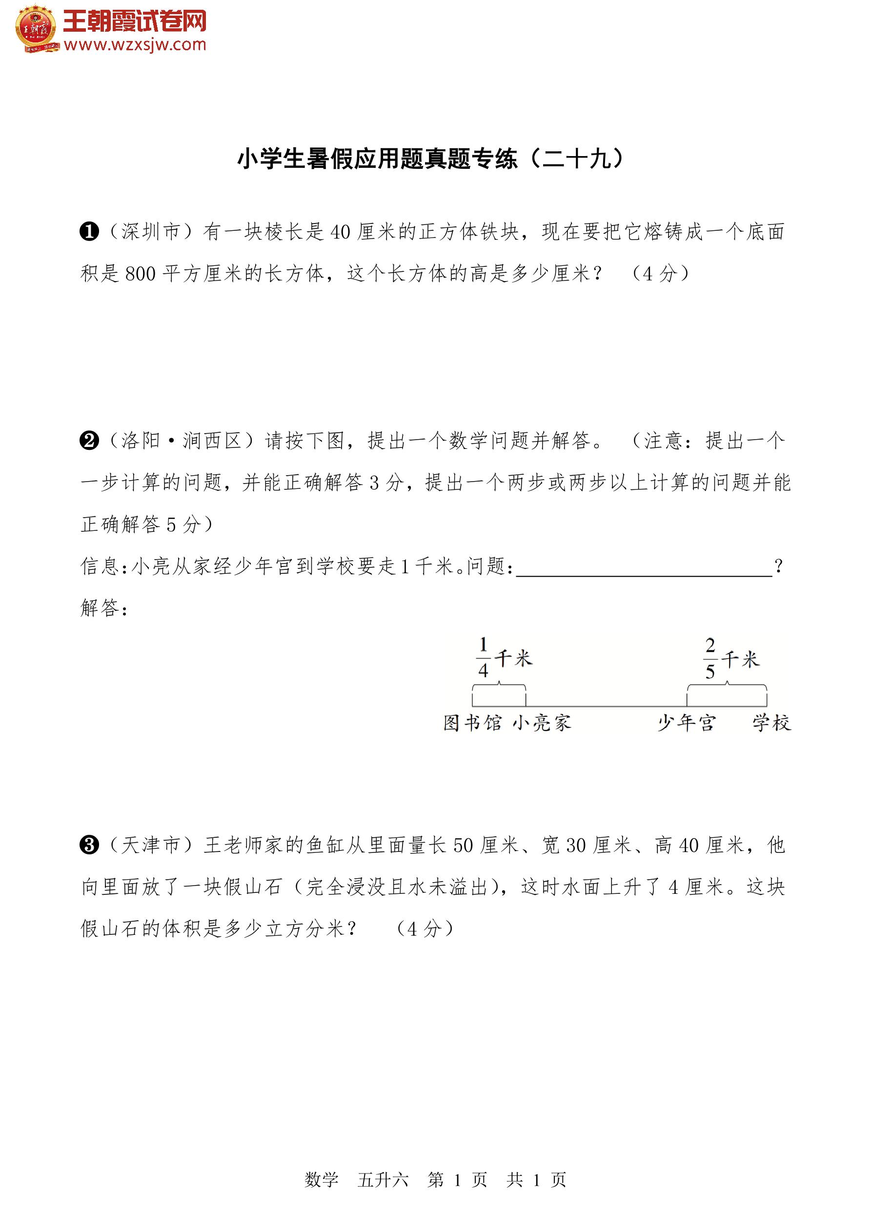 【五升六】小学生暑假数学应用题真题专练(二十九)