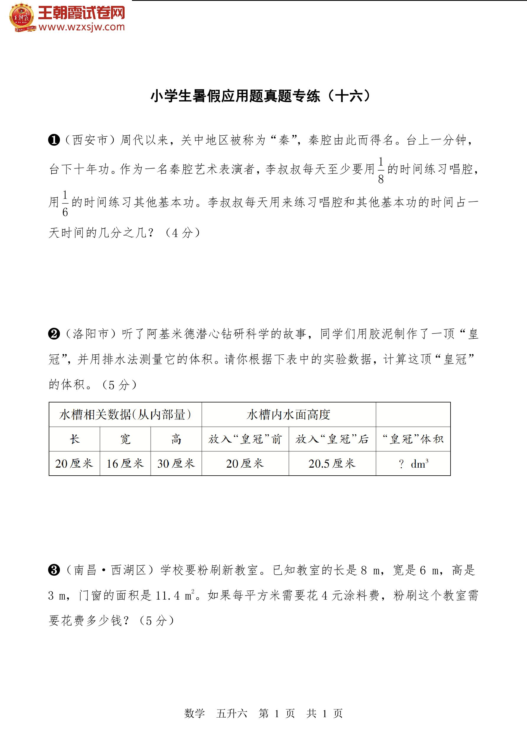 【五升六】小学生暑假数学应用题真题专练(十六)