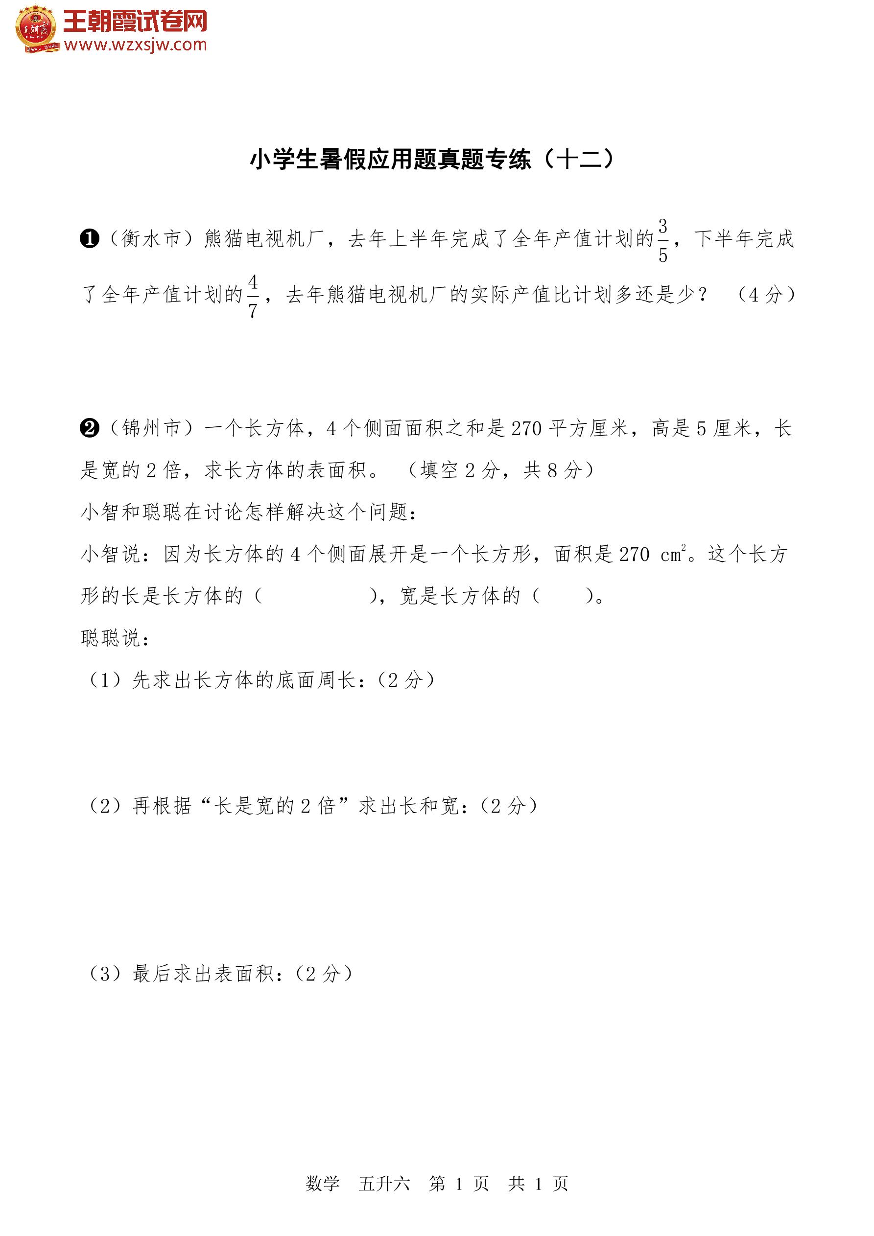 【五升六】小学生暑假数学应用题真题专练(十二)
