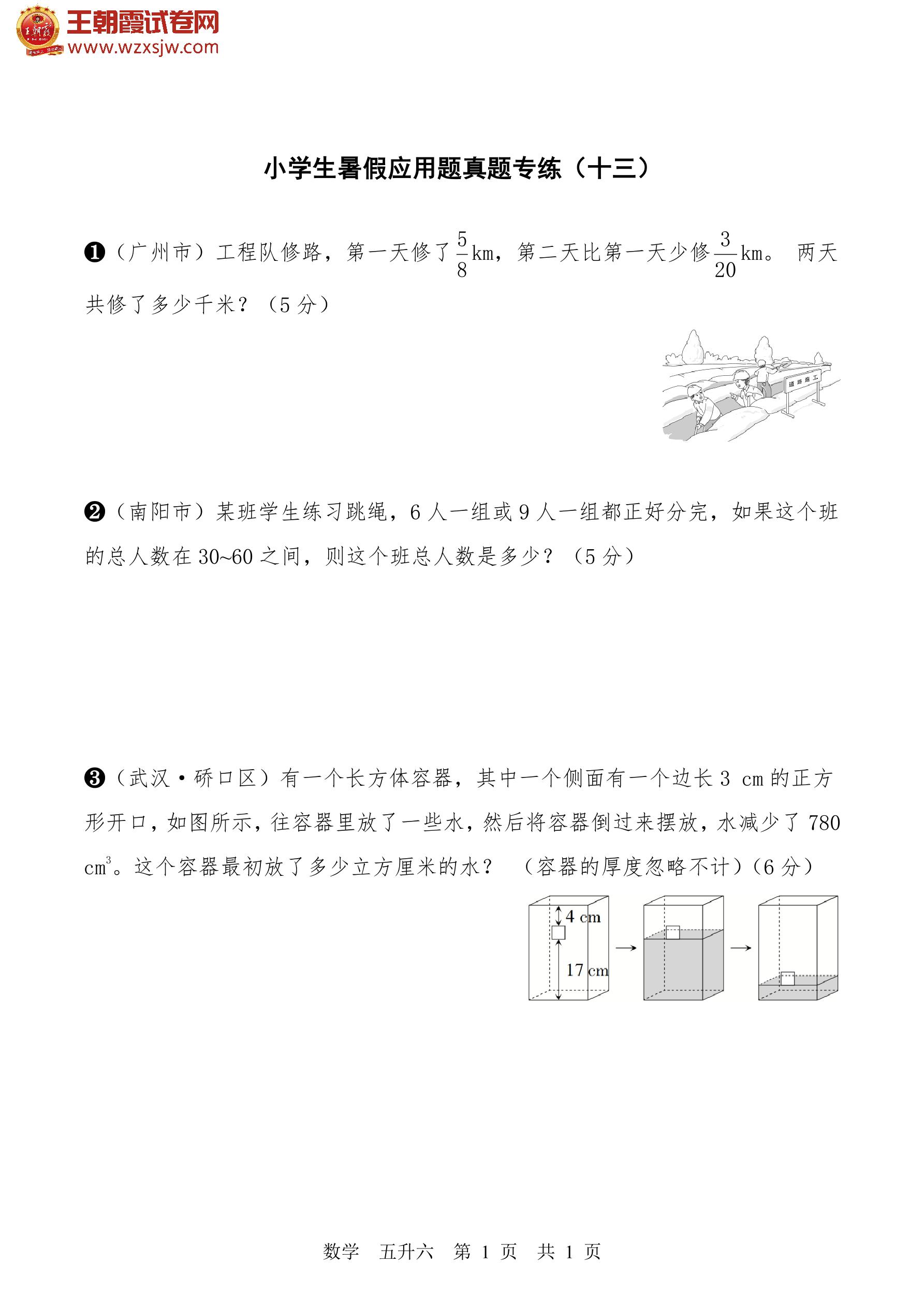 【五升六】小学生暑假数学应用题真题专练(十三)