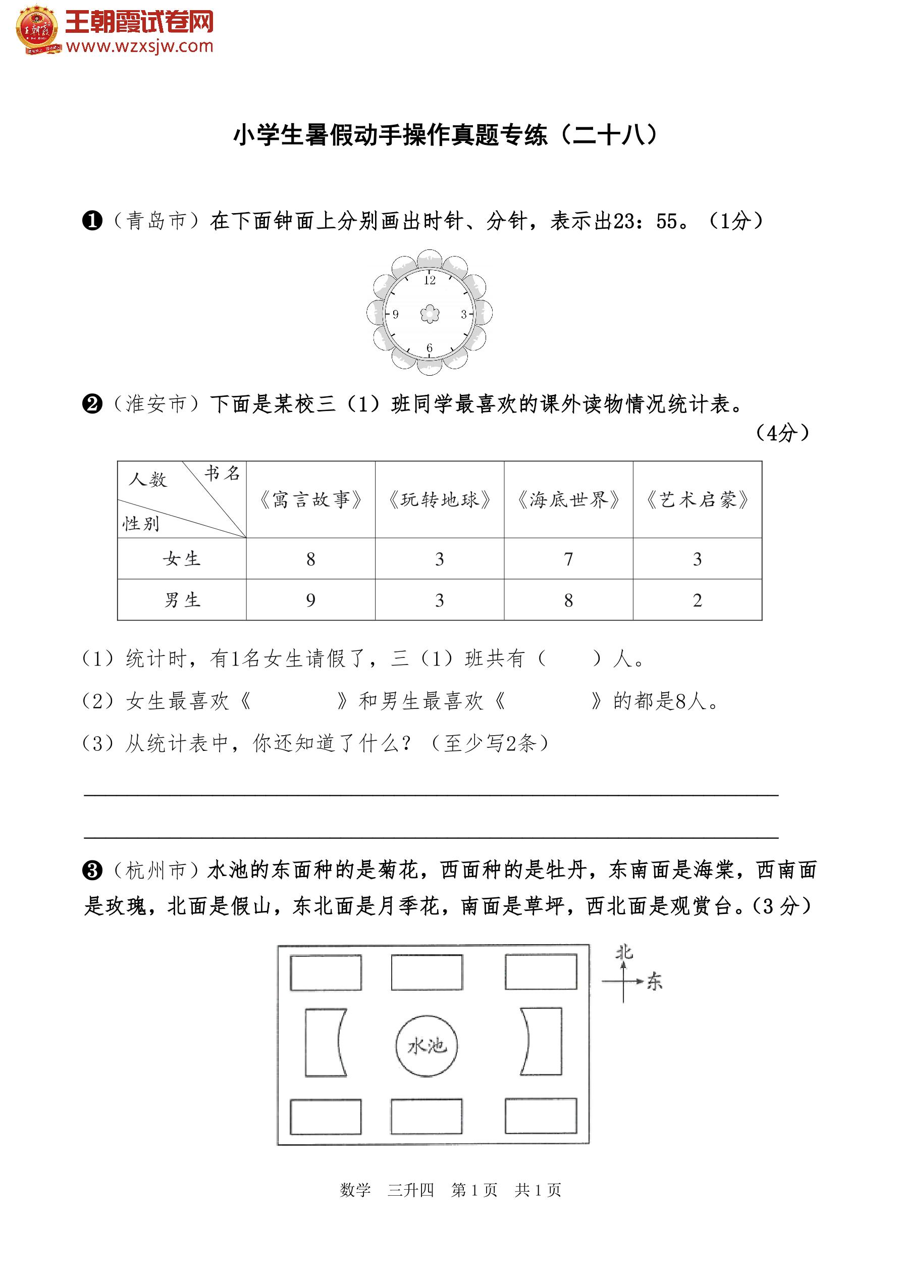【三升四】小学生暑假动手操作真题专练(二十八)