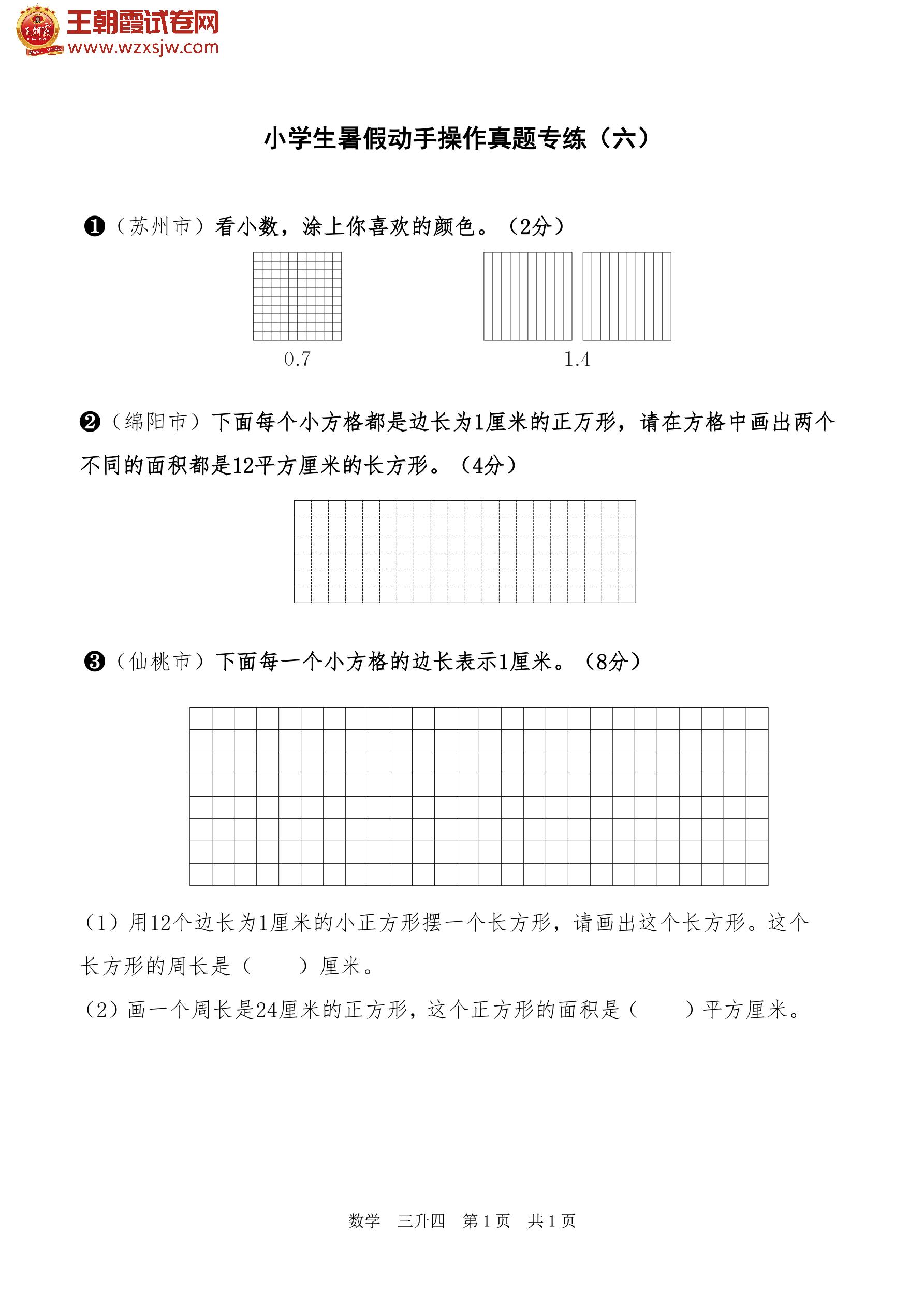 【三升四】小学生暑假动手操作真题专练(六)