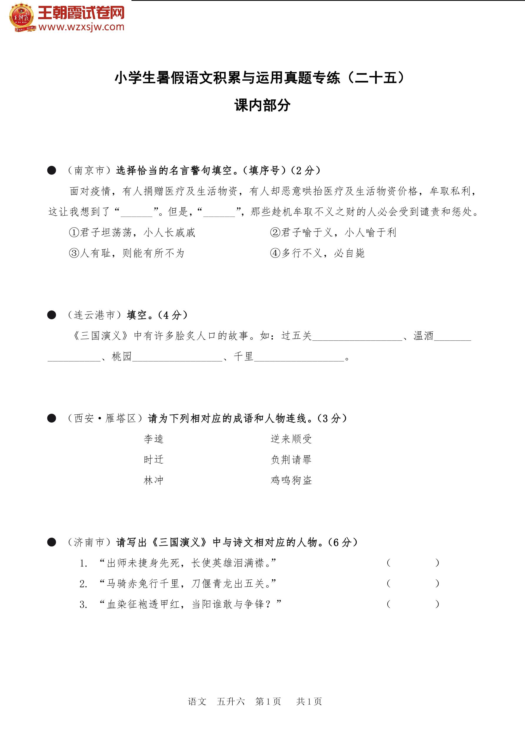 【五升六】小学生暑假语文积累与运用真题专练(二十五)