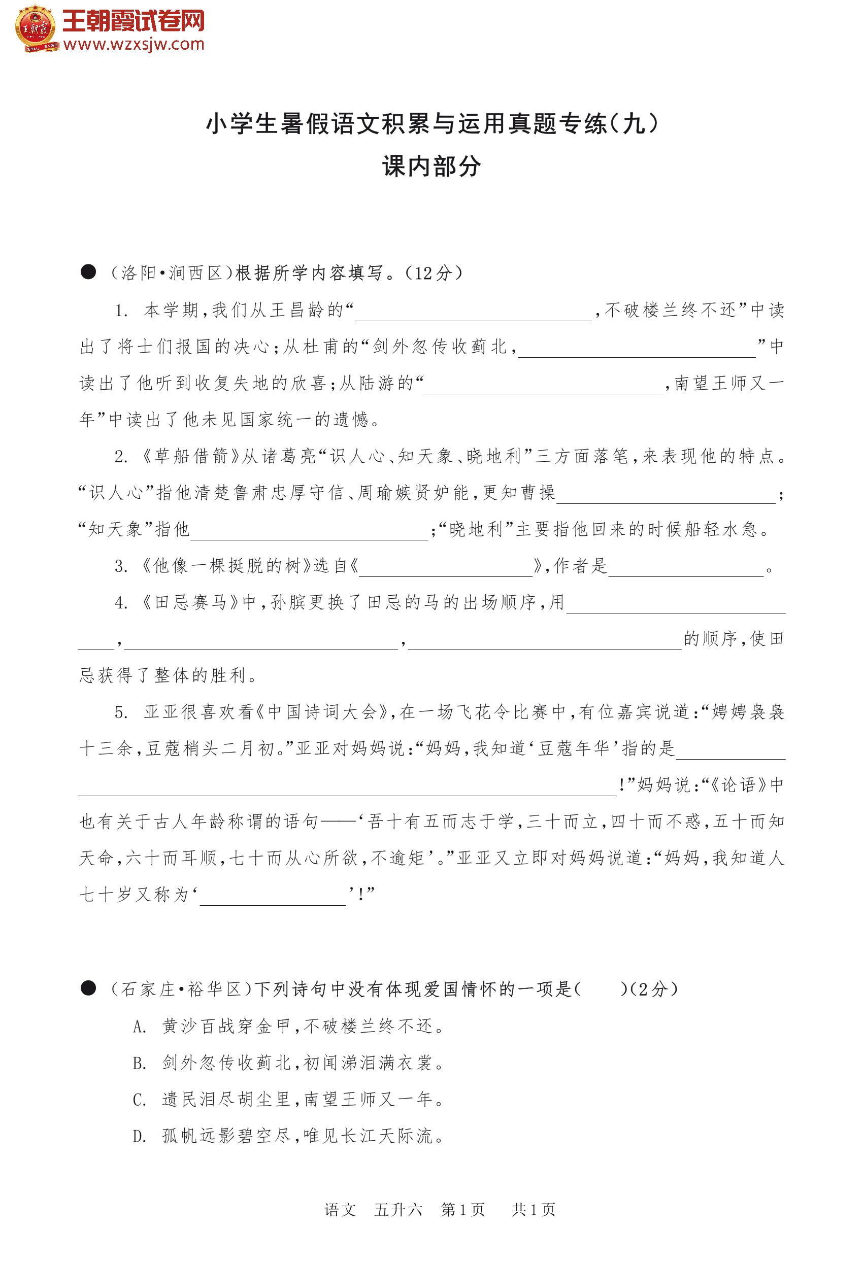 【五升六】小学生暑假语文积累与运用真题专练(九)