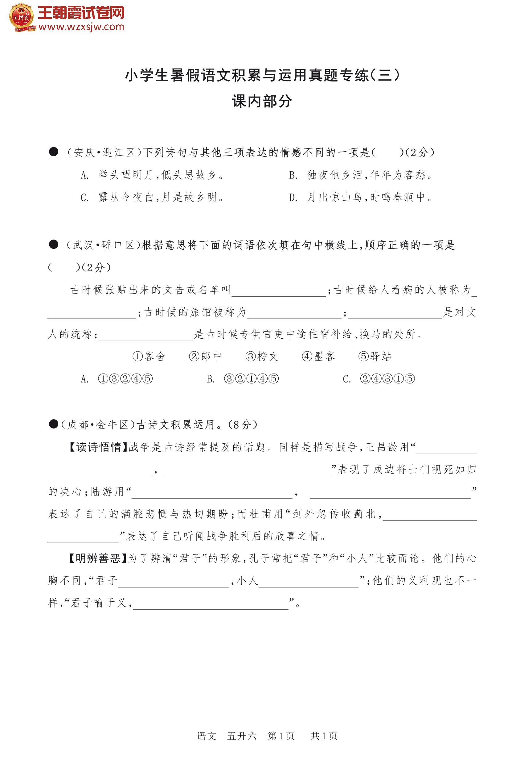 【五升六】小学生暑假语文积累与运用真题专练(三)