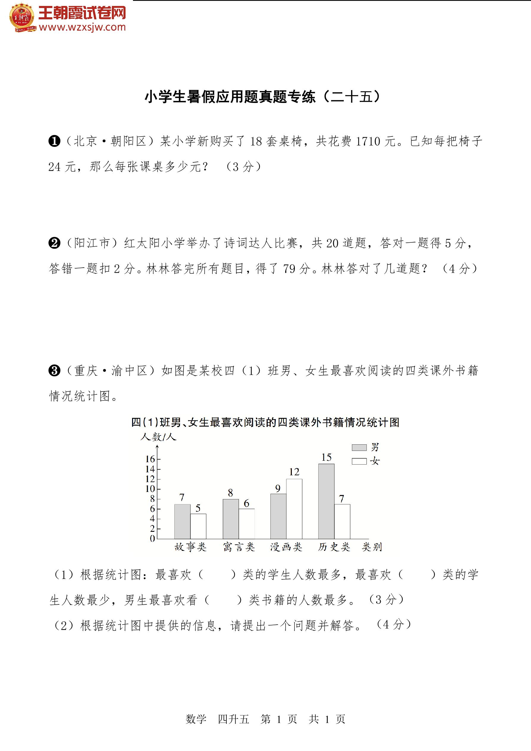 【四升五】小学生暑假数学应用题真题专练(二十五)