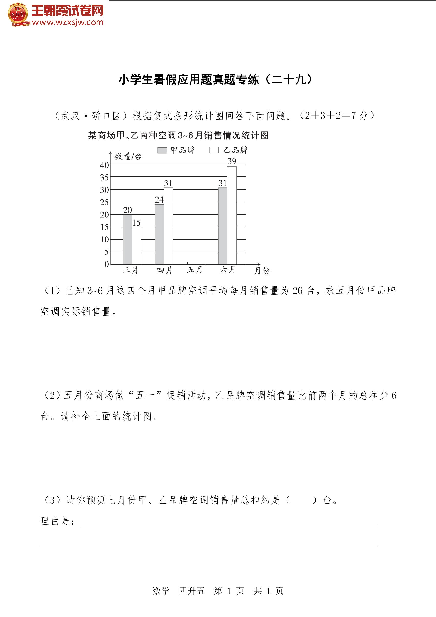 【四升五】小学生暑假数学应用题真题专练(二十九)