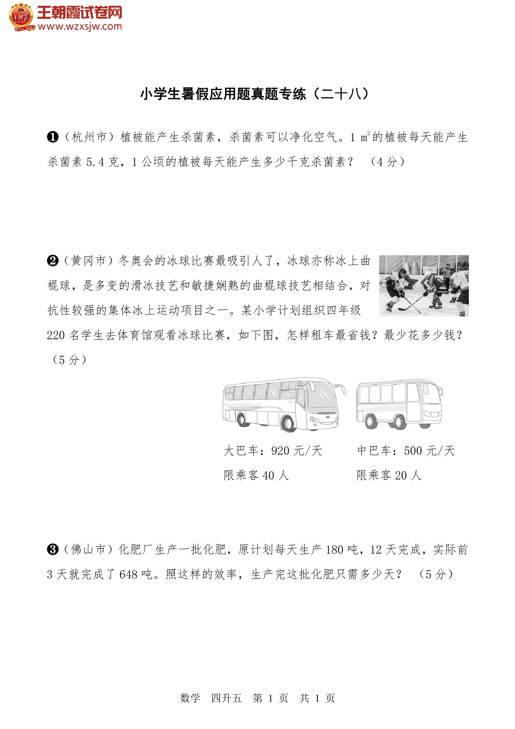 【四升五】小学生暑假数学应用题真题专练(二十八)
