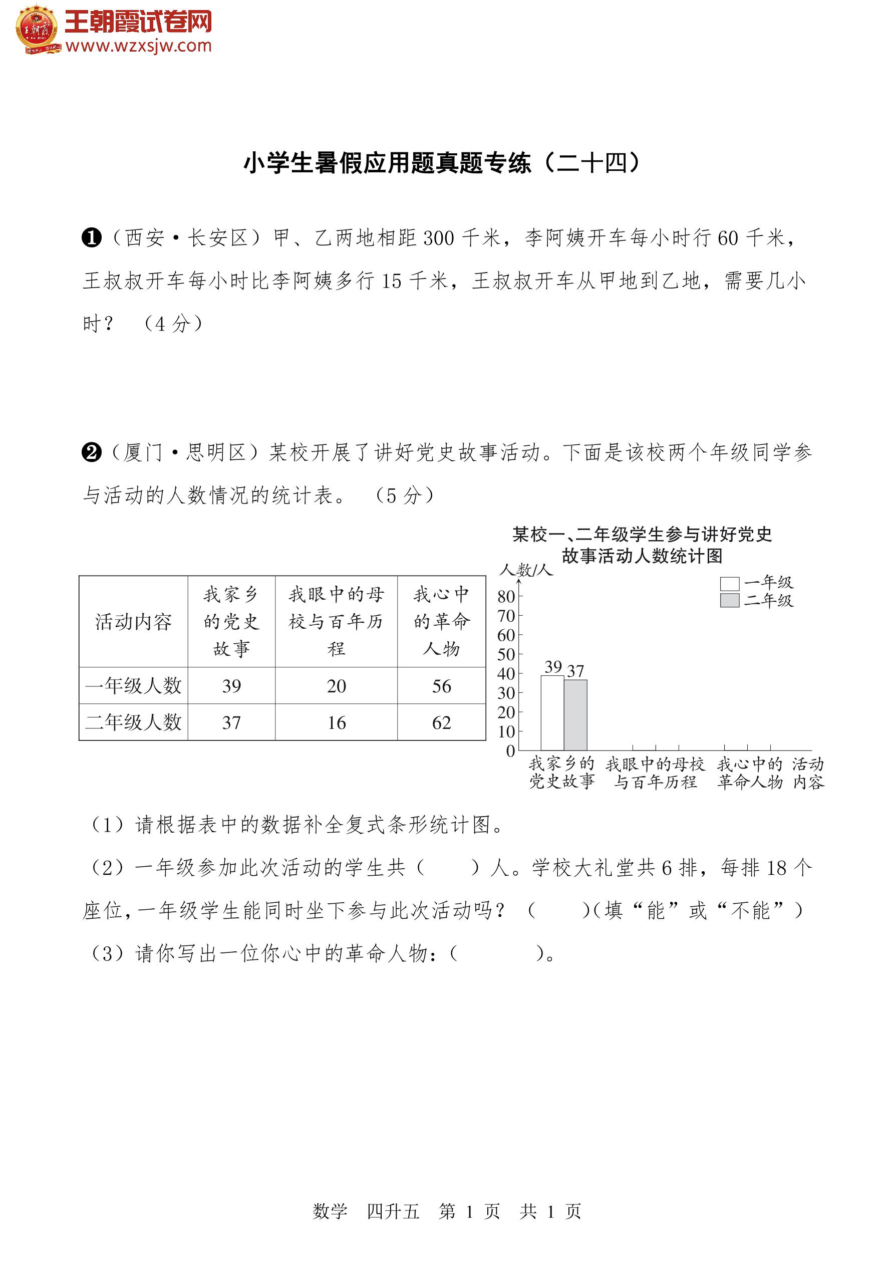 【四升五】小学生暑假数学应用题真题专练(二十四)