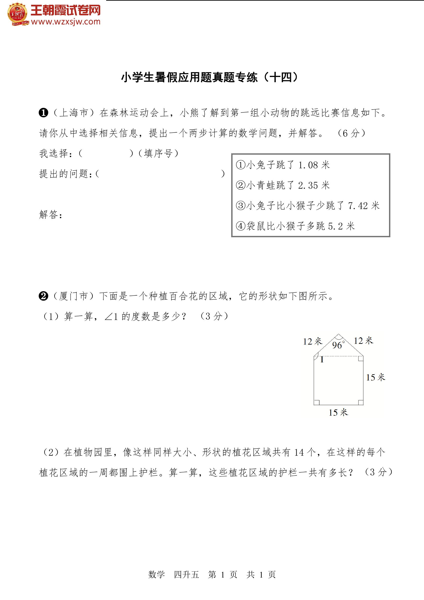 【四升五】小学生暑假数学应用题真题专练(十四)