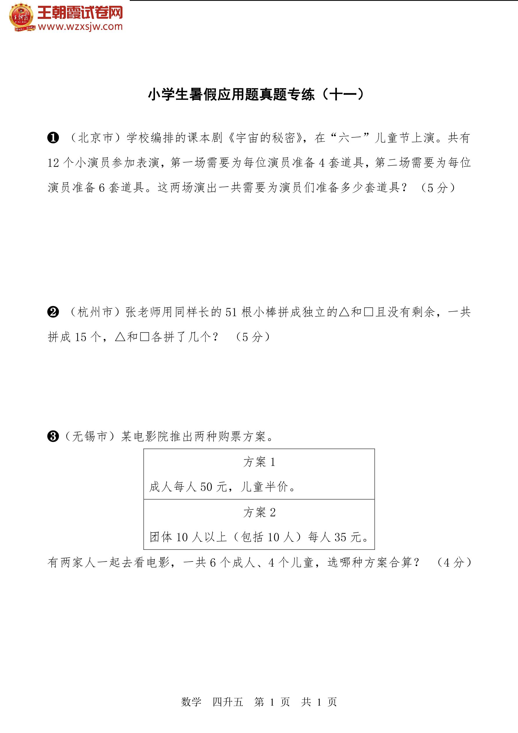 【四升五】小学生暑假数学应用题真题专练(十一)