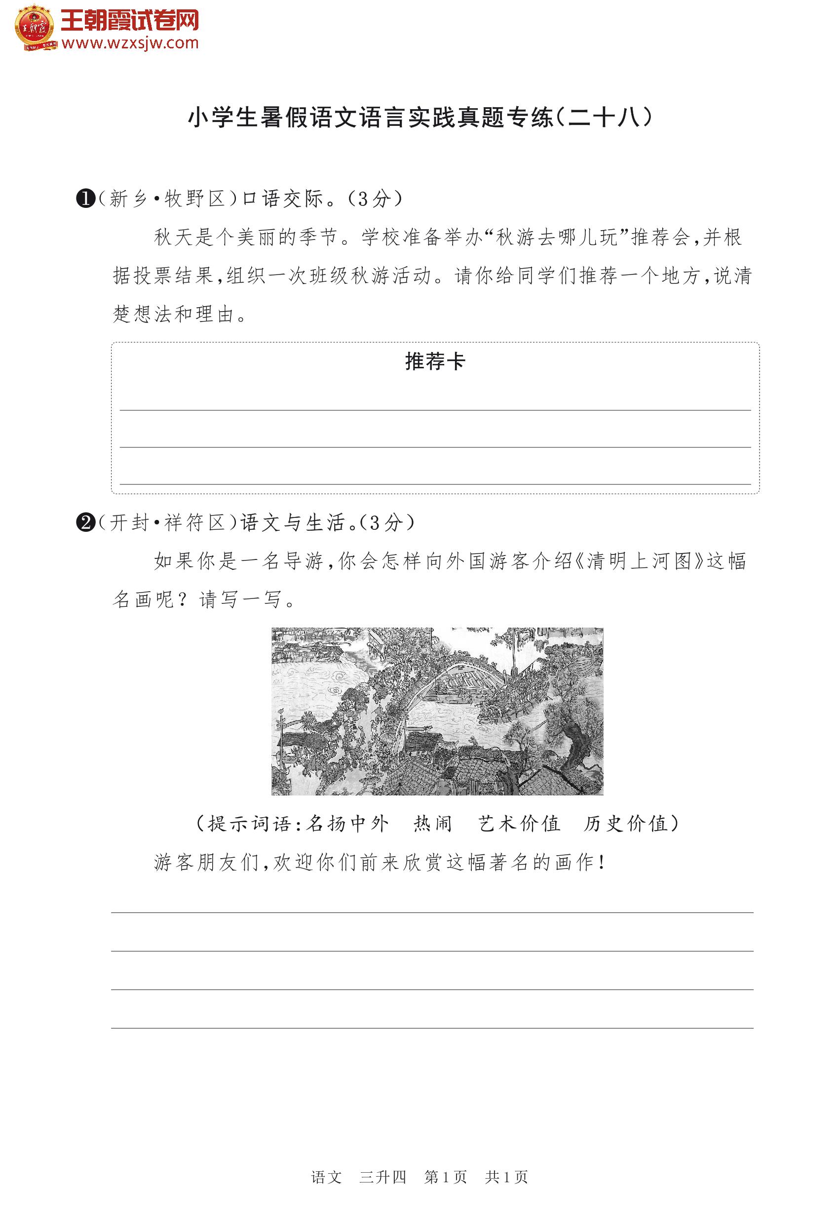 【三升四】小学生暑假语文语言实践真题专练(二十八)