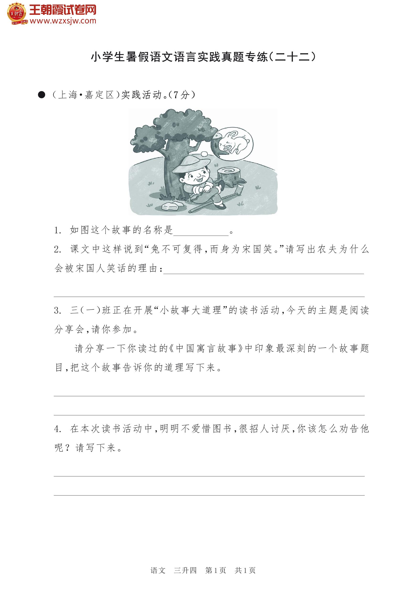 【三升四】小学生暑假语文语言实践真题专练(二十二)