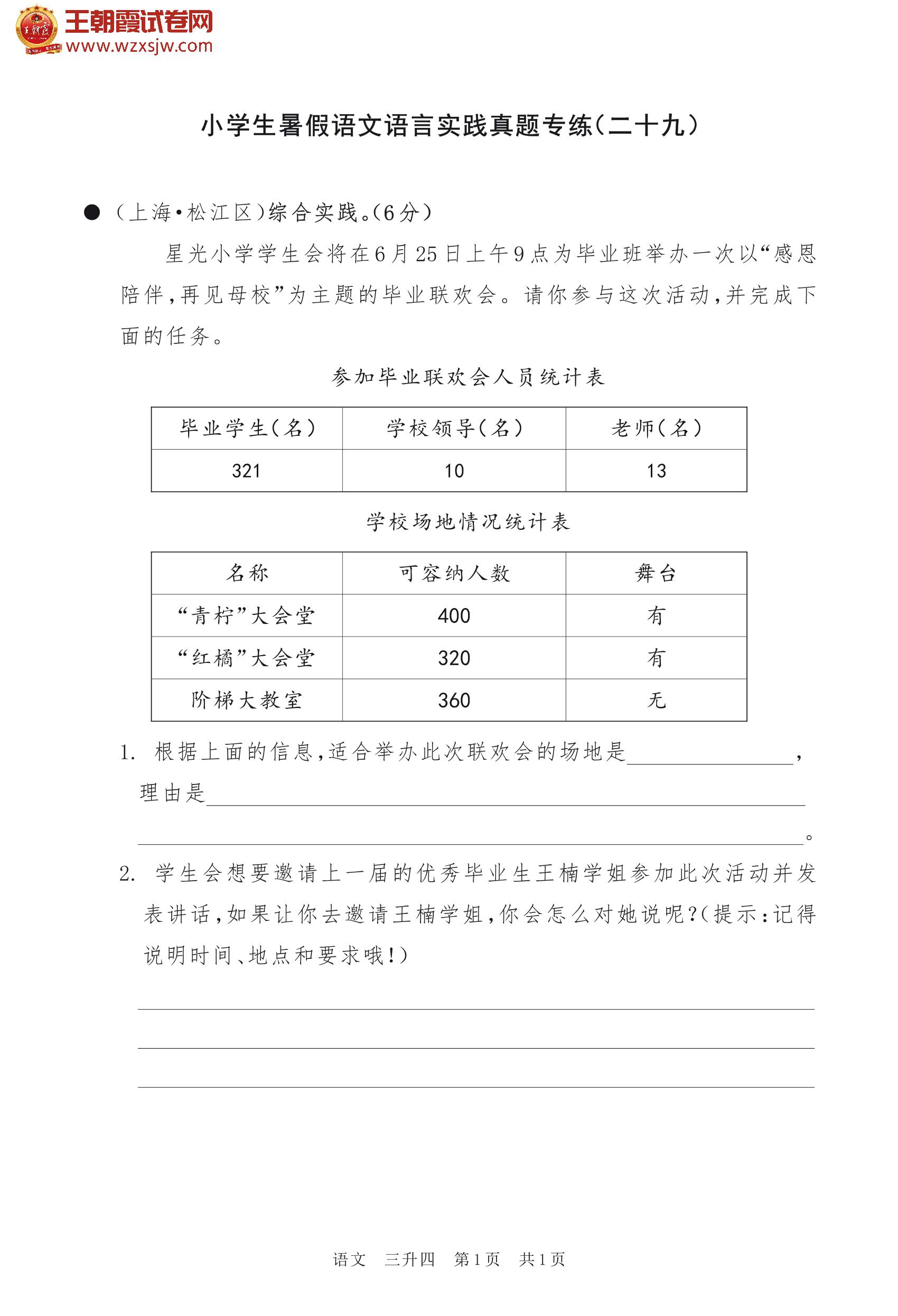 【三升四】小学生暑假语文语言实践真题专练(二十九)