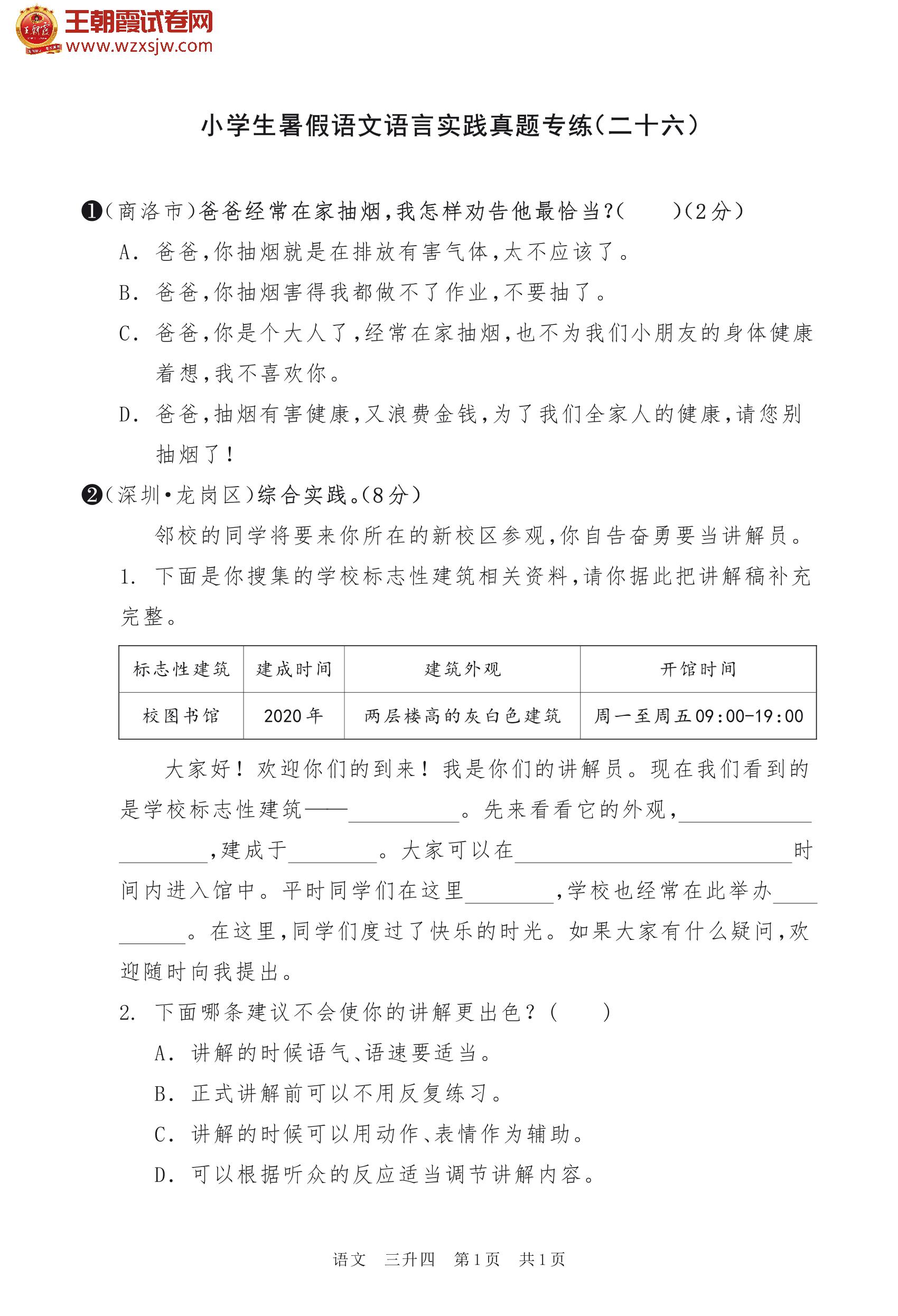 【三升四】小学生暑假语文语言实践真题专练(二十六)