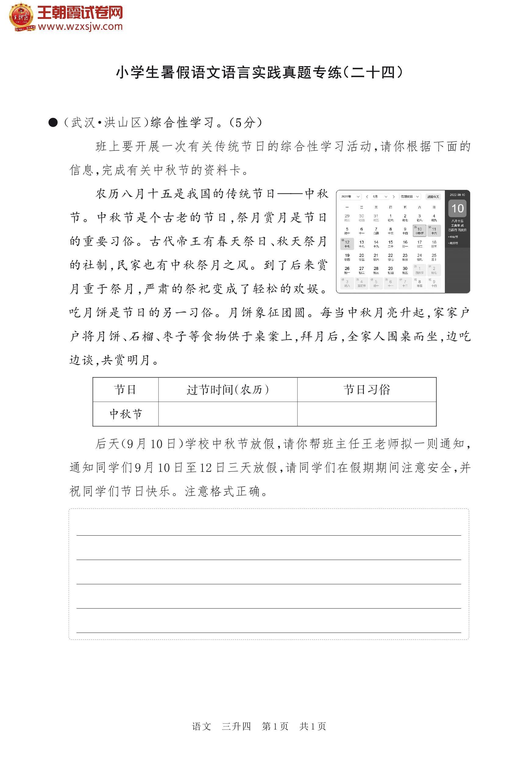 【三升四】小学生暑假语文语言实践真题专练(二十四)