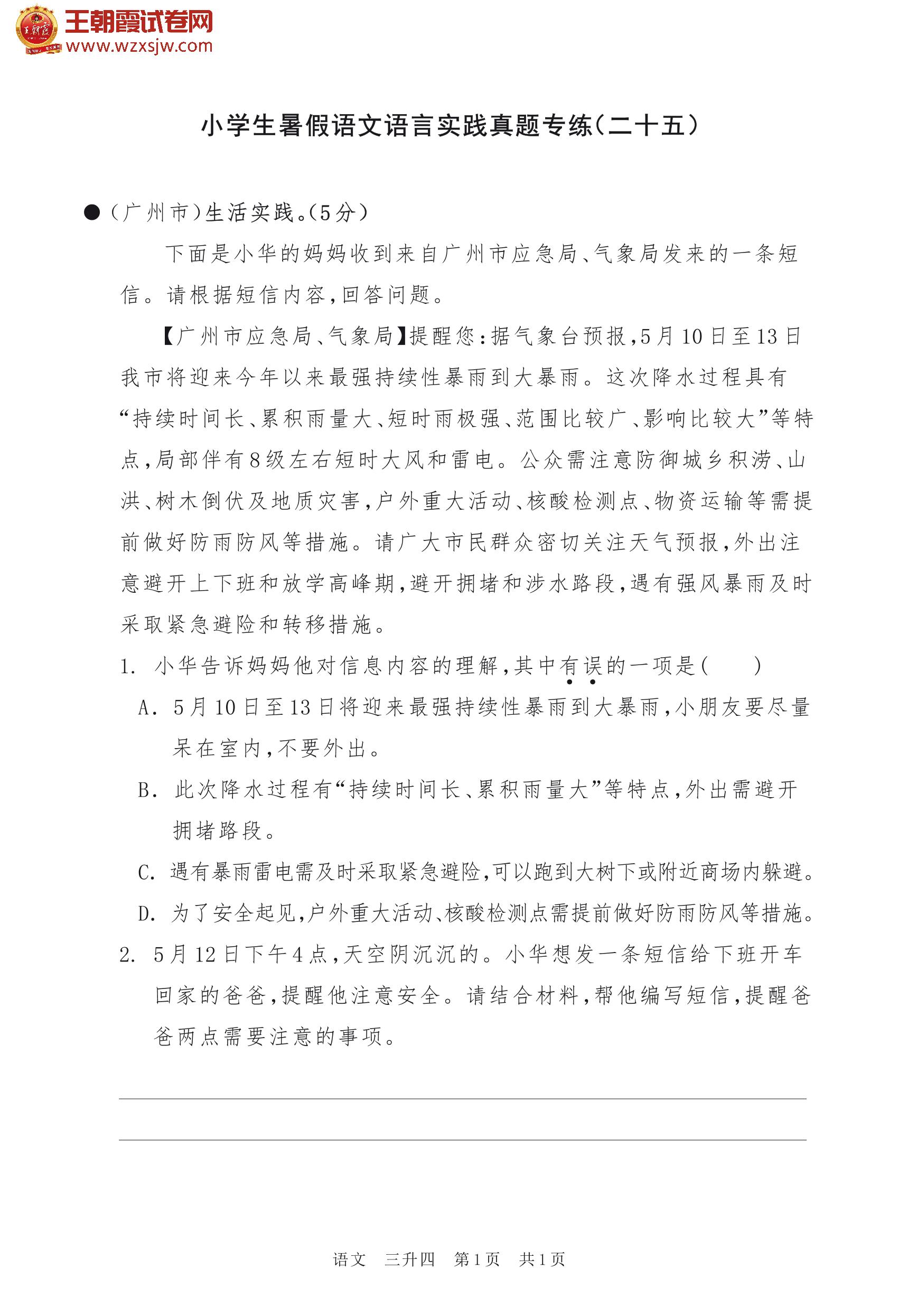 【三升四】小学生暑假语文语言实践真题专练(二十五)