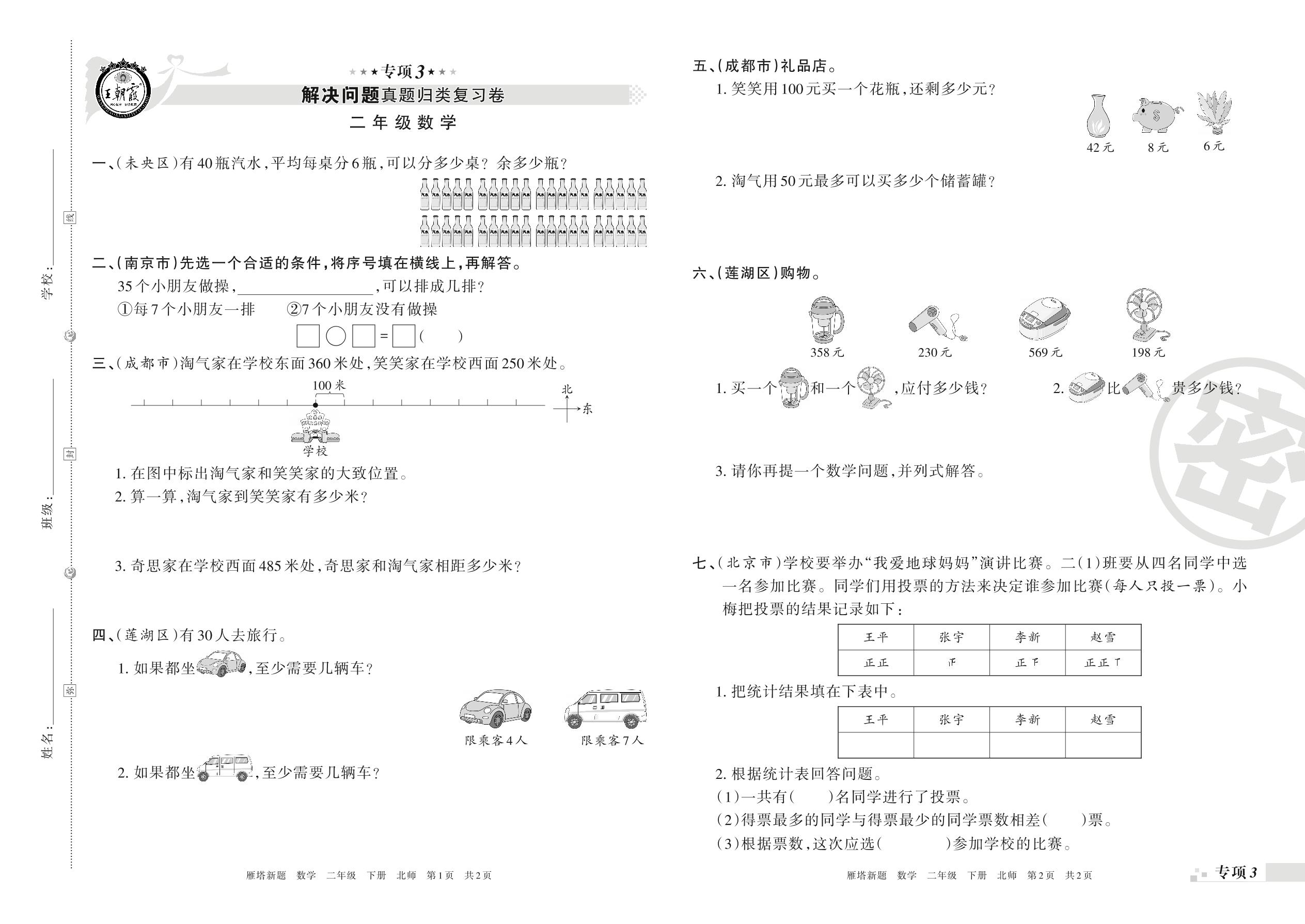 王朝霞期末专项卷——解决问题真题归类复习、新颖题速递:生活与数学二年级下册数学(北师版)_R21080381953【0】