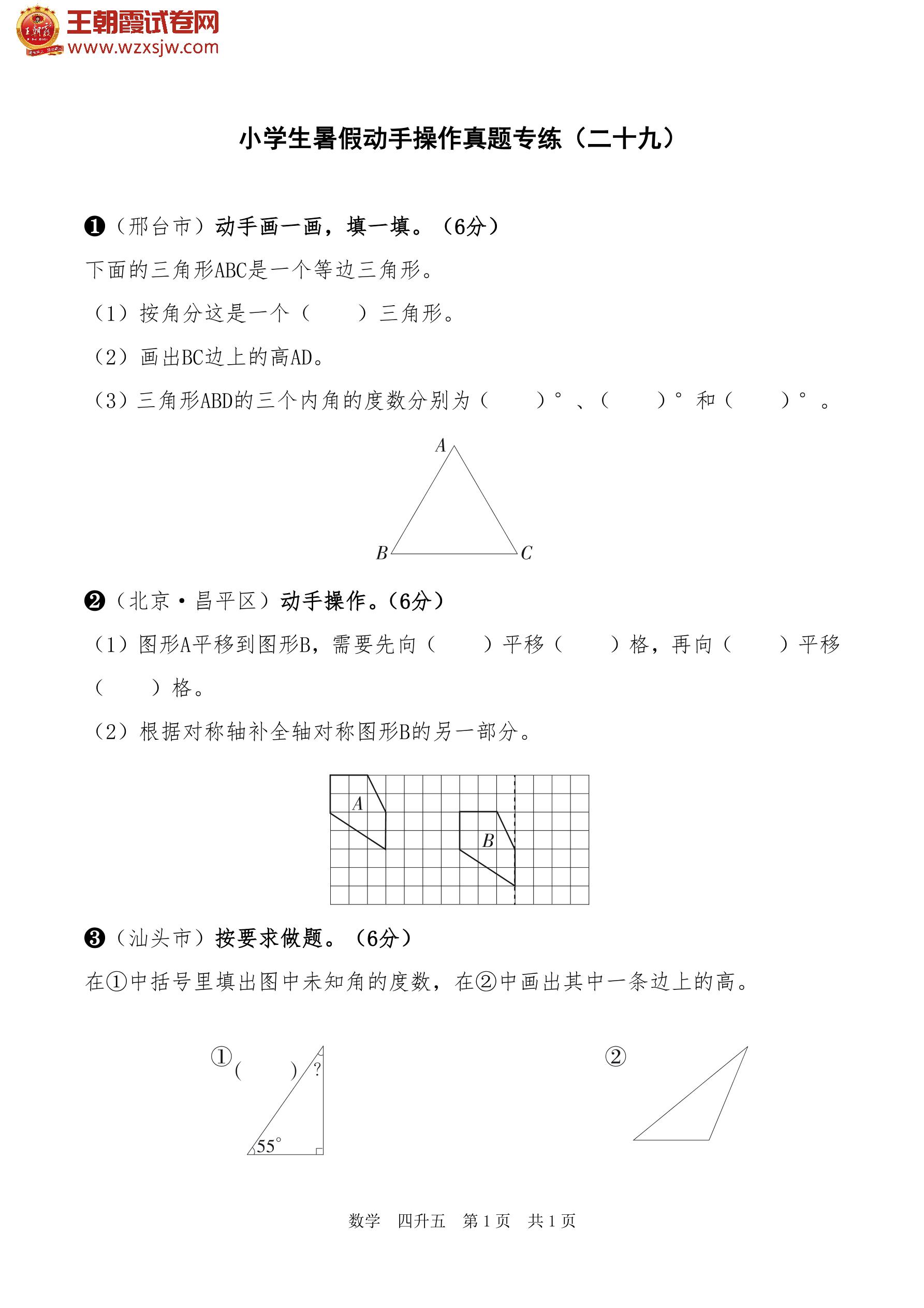 【四升五】小学生暑假动手操作真题专练(二十九)