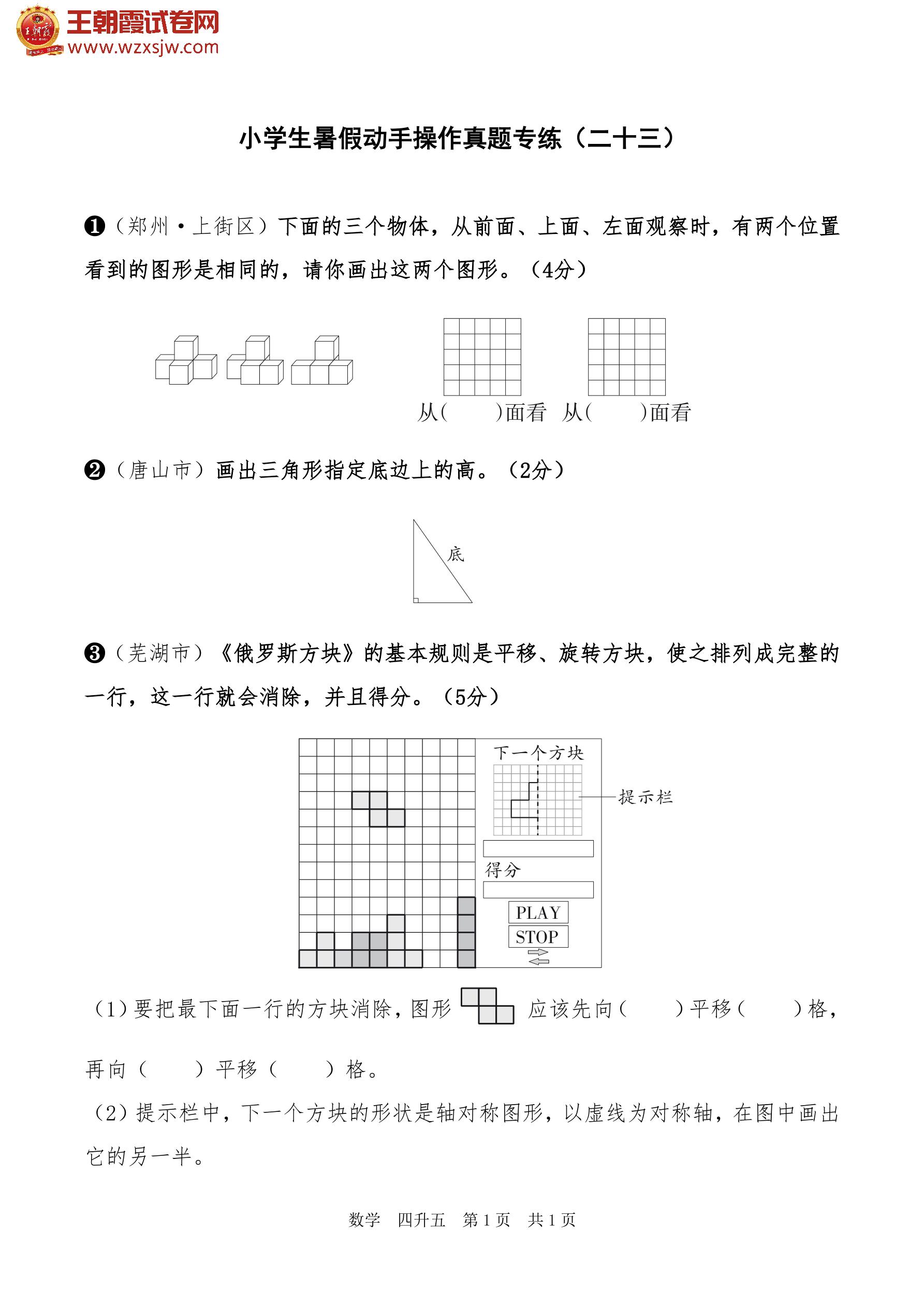 【四升五】小学生暑假动手操作真题专练(二十三)