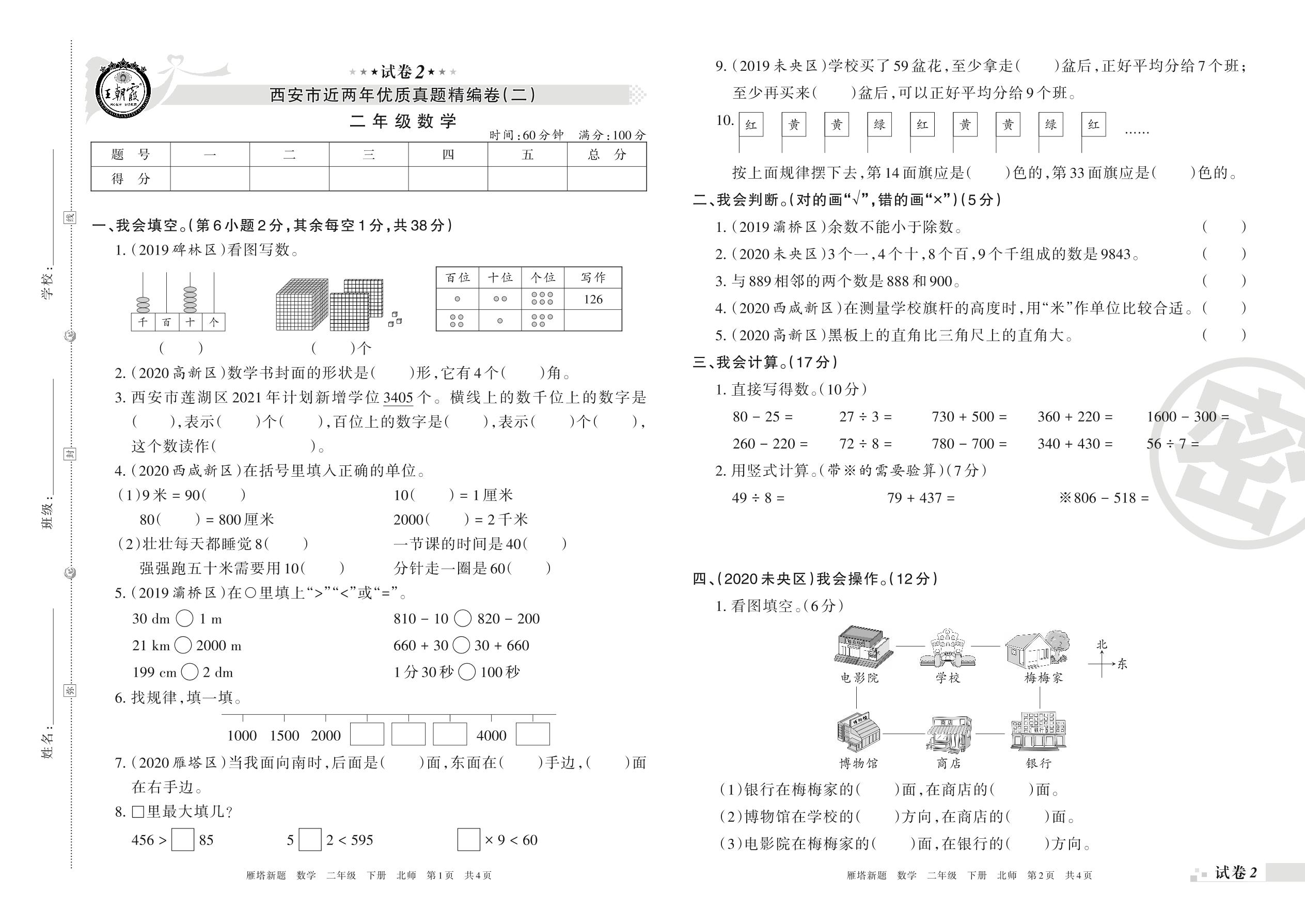 优质试题精编卷(二)二年级下册数学(北师版)【2】