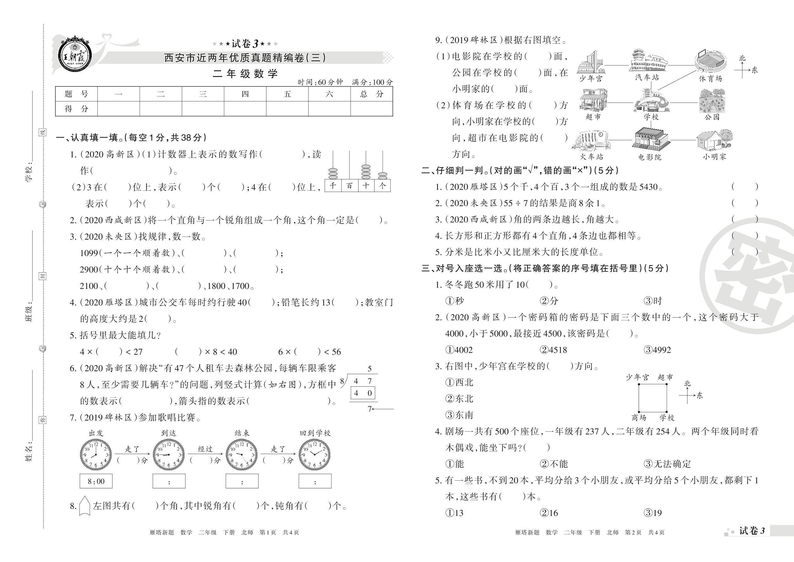优质试题精编卷(三)二年级下册数学(北师版)【3】