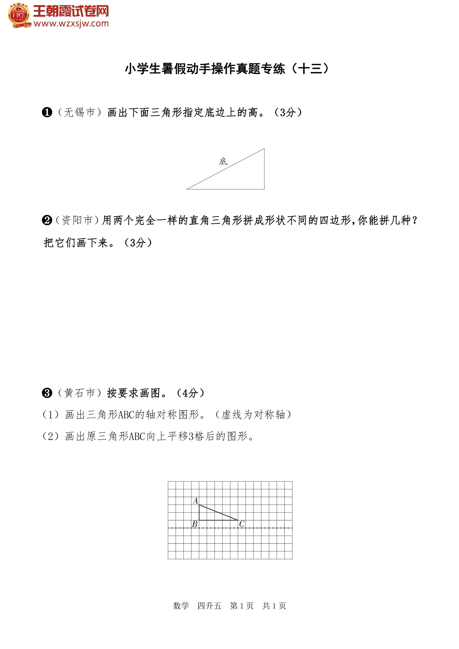 【四升五】小学生暑假动手操作真题专练(十三)