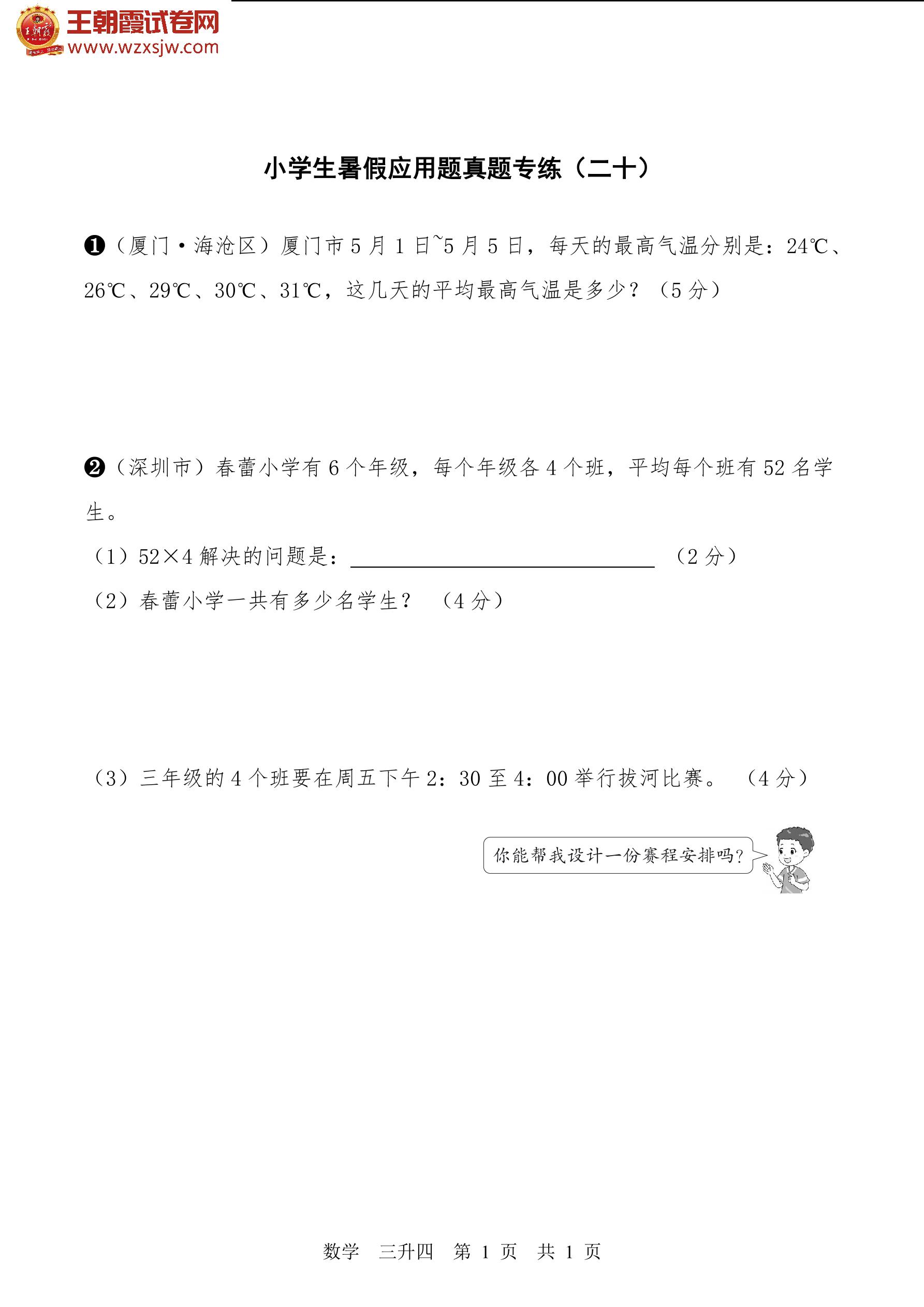 【三升四】小学生暑假数学应用题真题专练(二十)