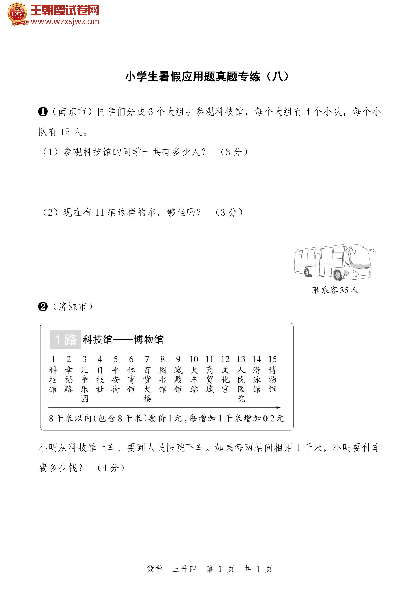 【三升四】小学生暑假数学应用题真题专练(八)