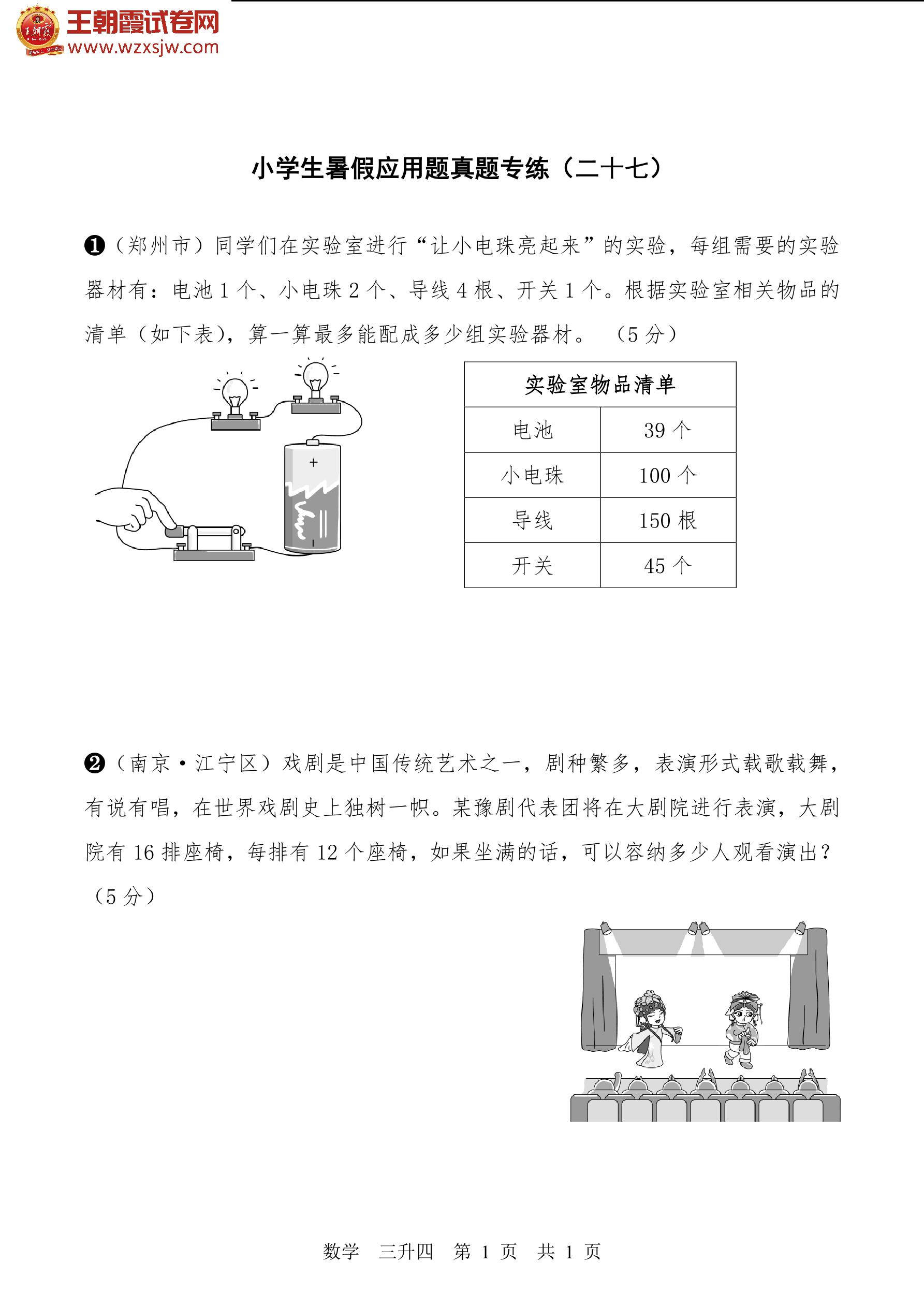 【三升四】小学生暑假数学应用题真题专练(二十七)