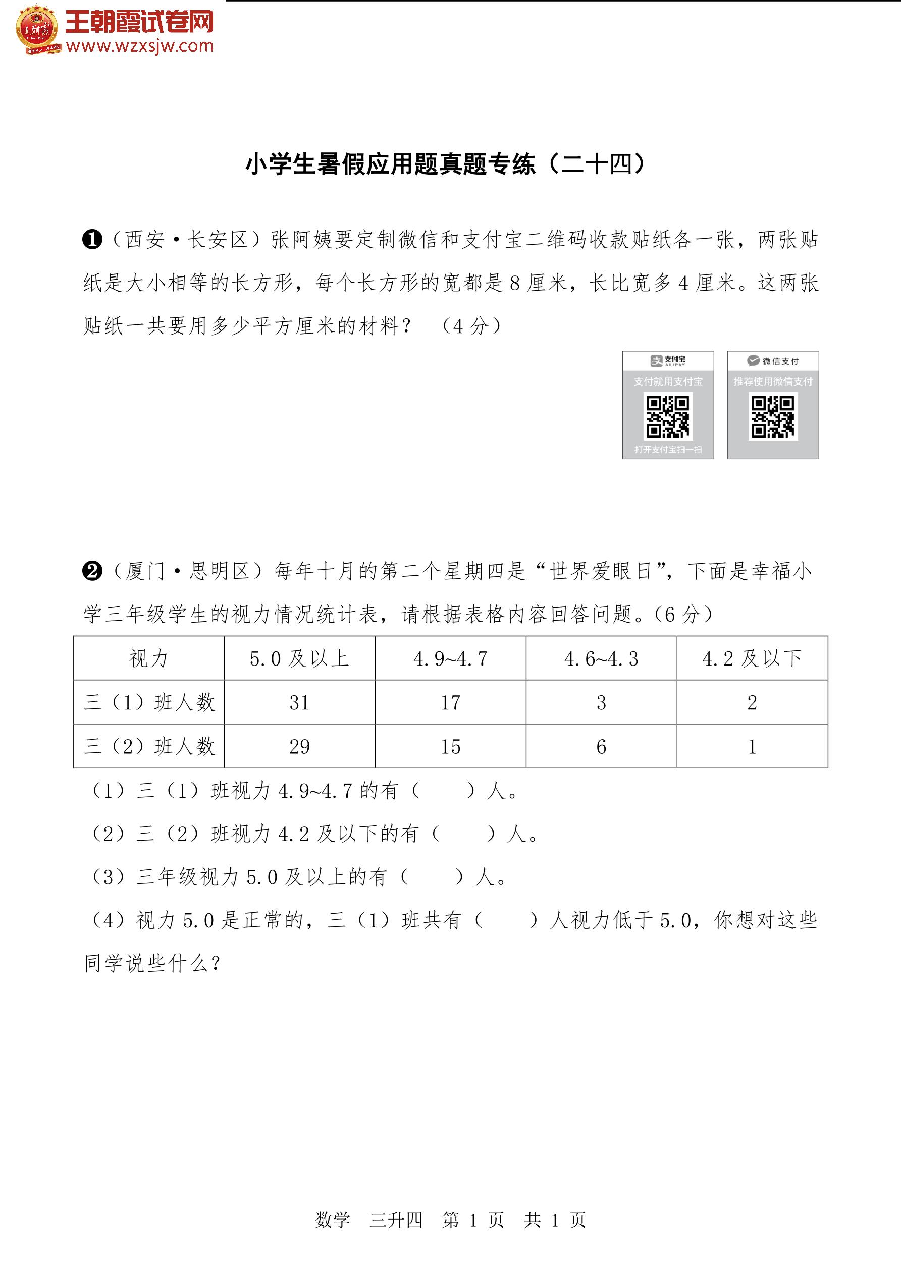 【三升四】小学生暑假数学应用题真题专练(二十四)