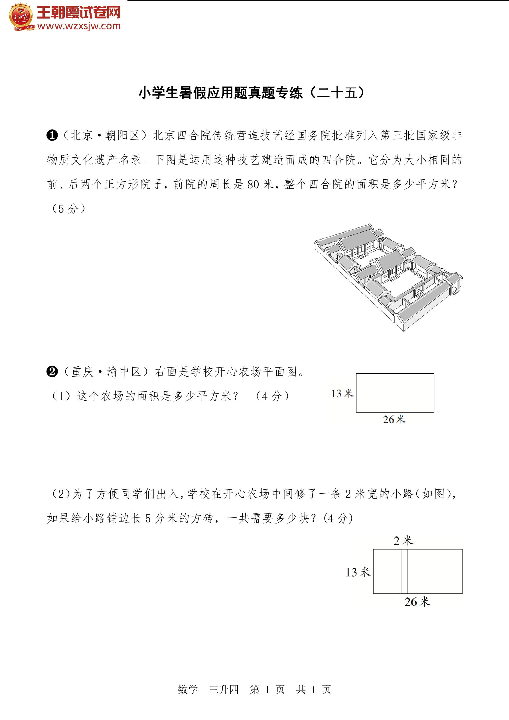 【三升四】小学生暑假数学应用题真题专练(二十五)