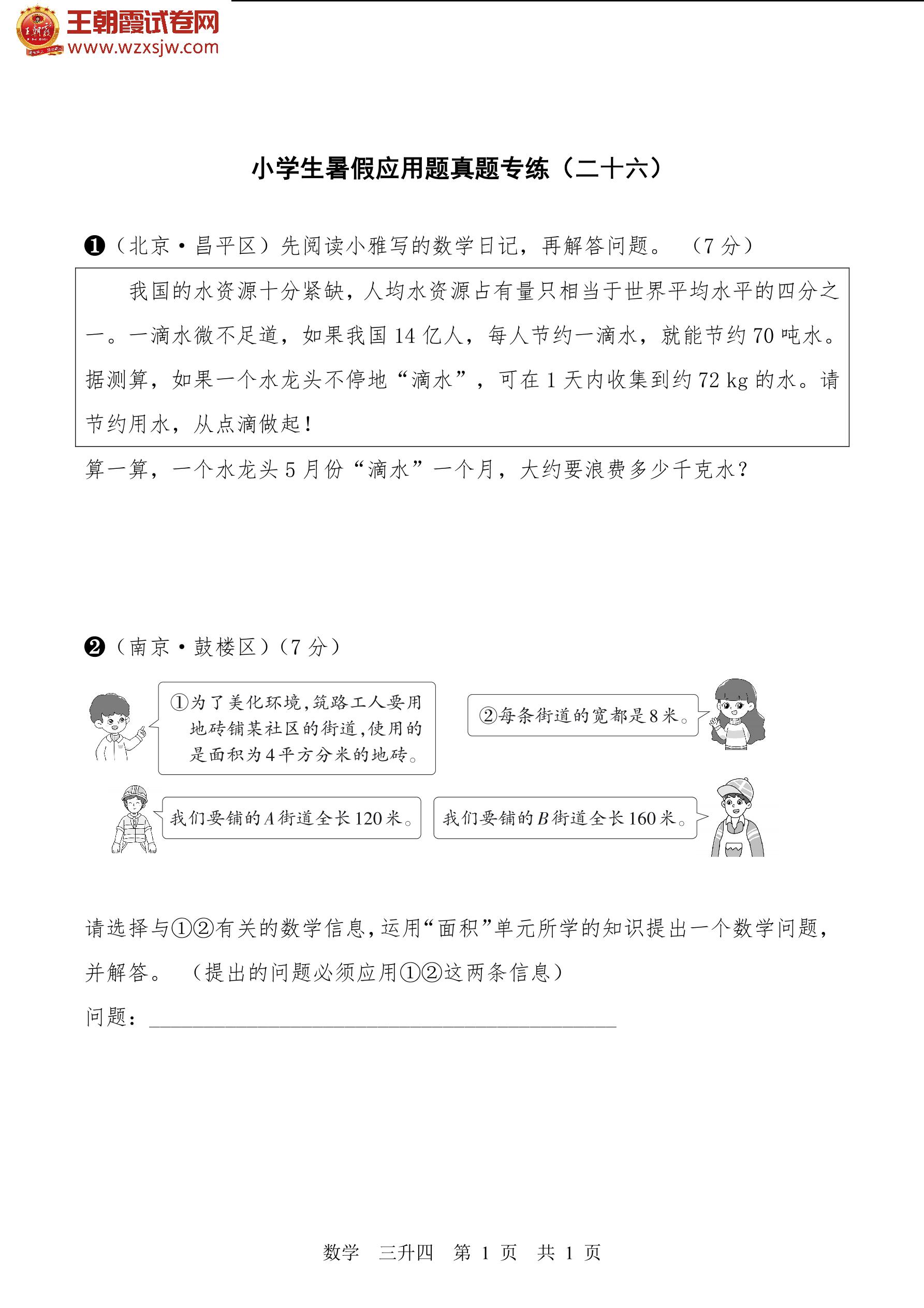【三升四】小学生暑假数学应用题真题专练(二十六)