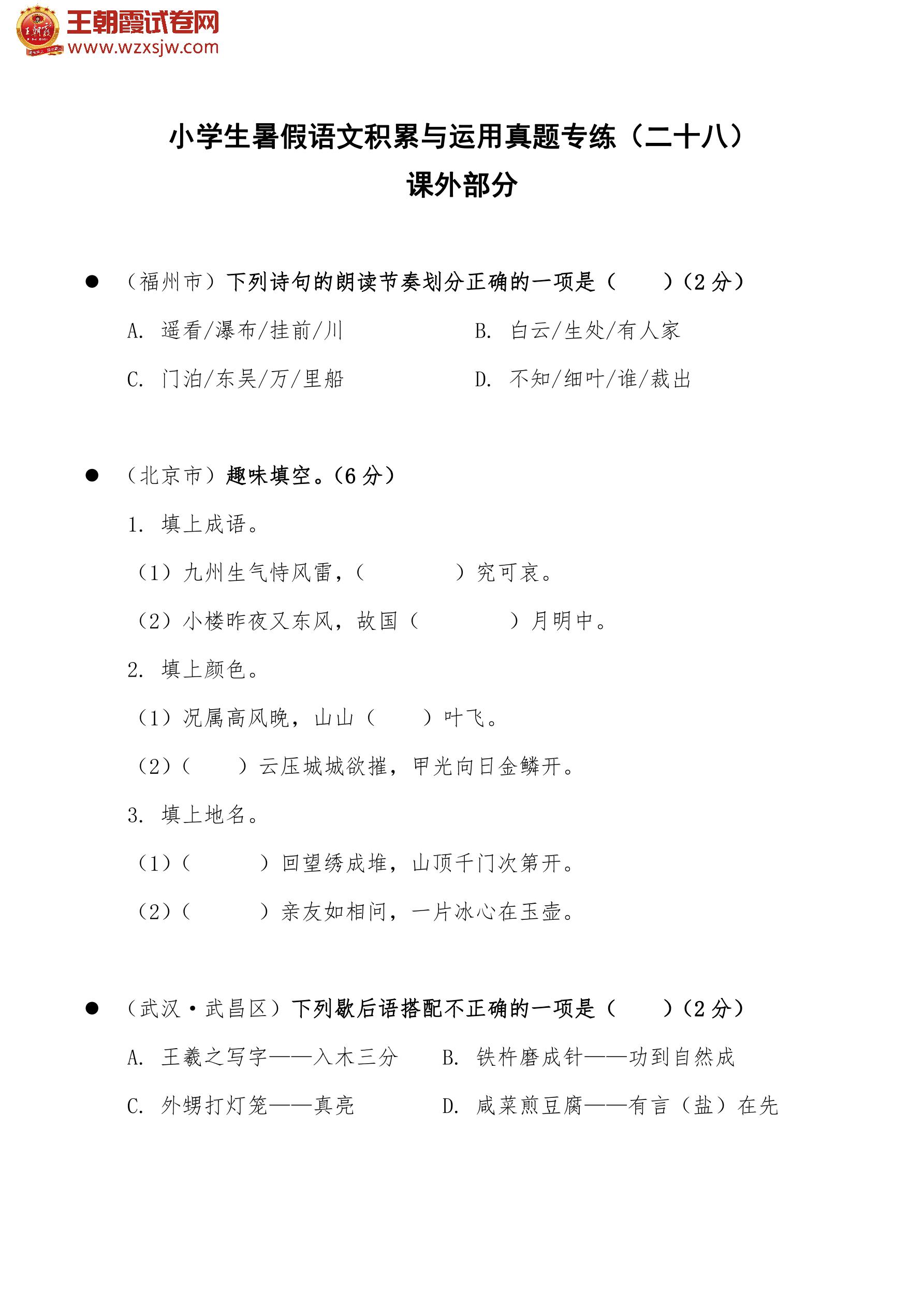 【四升五】小学生暑假语文积累与运用真题专练(二十八)