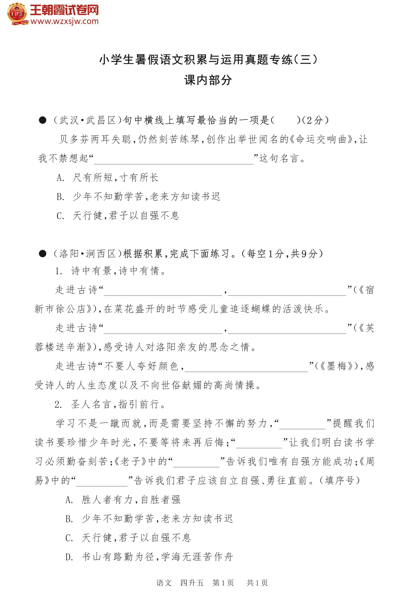 【四升五】小学生暑假语文积累与运用真题专练(三)