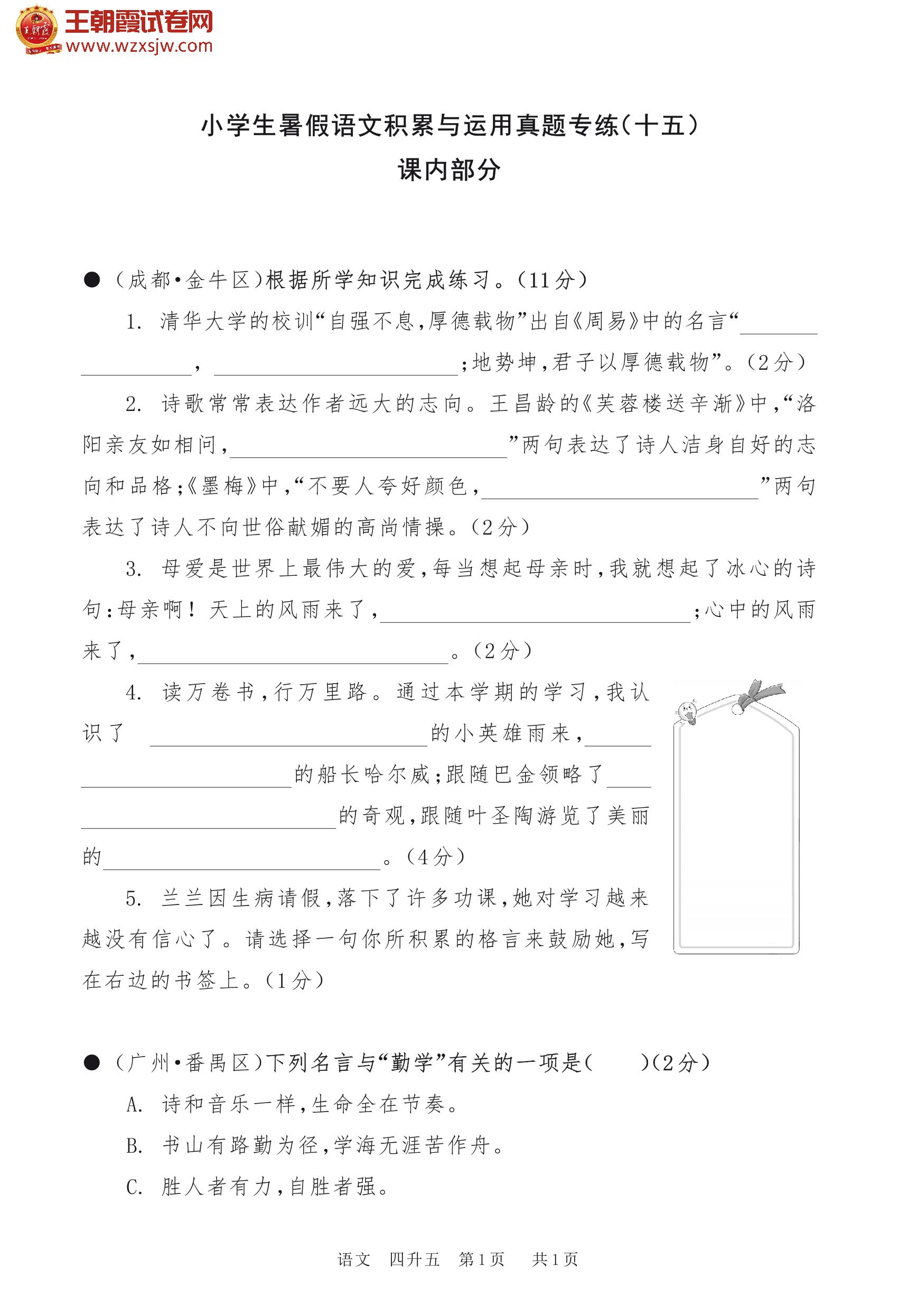 【四升五】小学生暑假语文积累与运用真题专练(十五)
