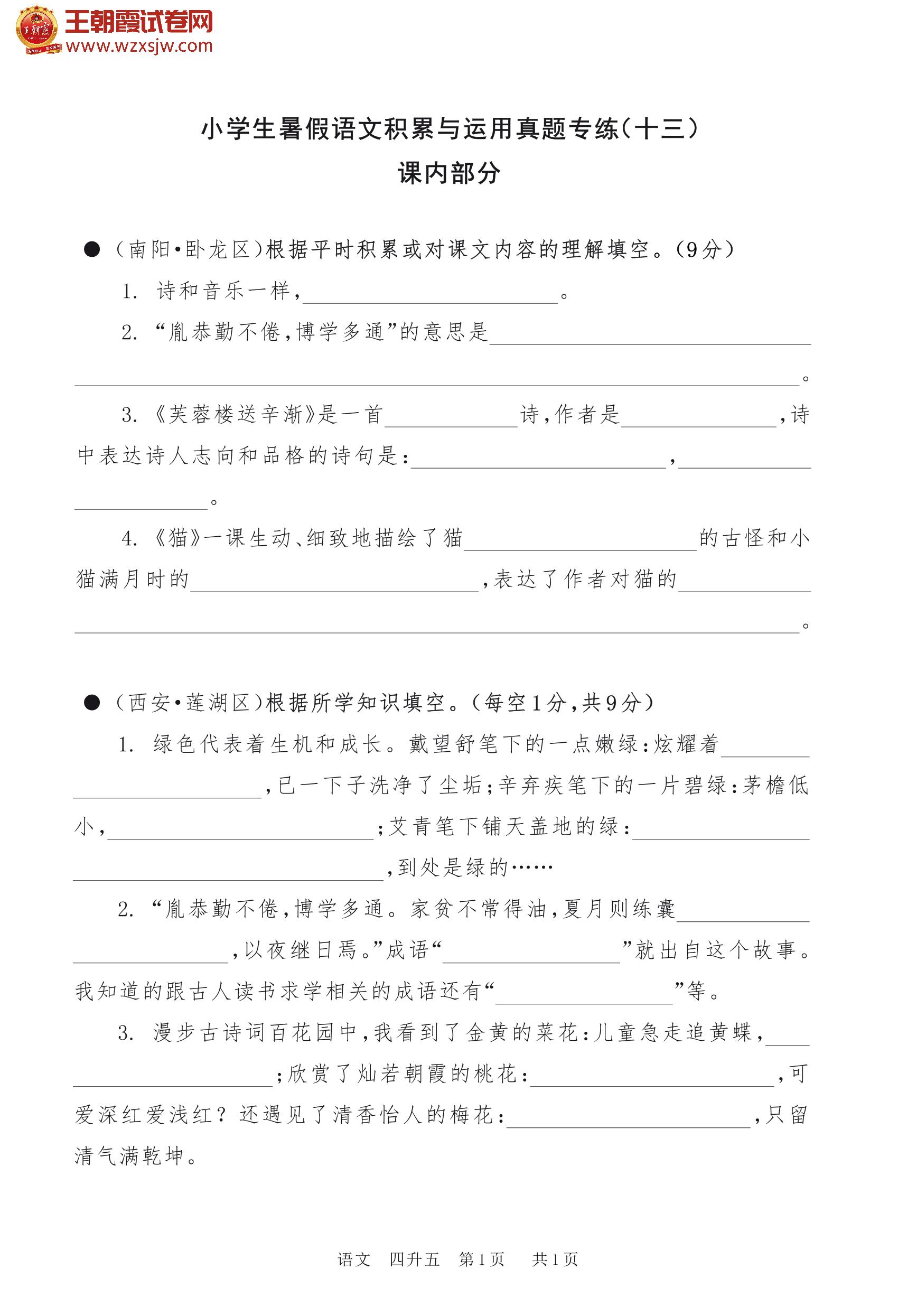 【四升五】小学生暑假语文积累与运用真题专练(十三)