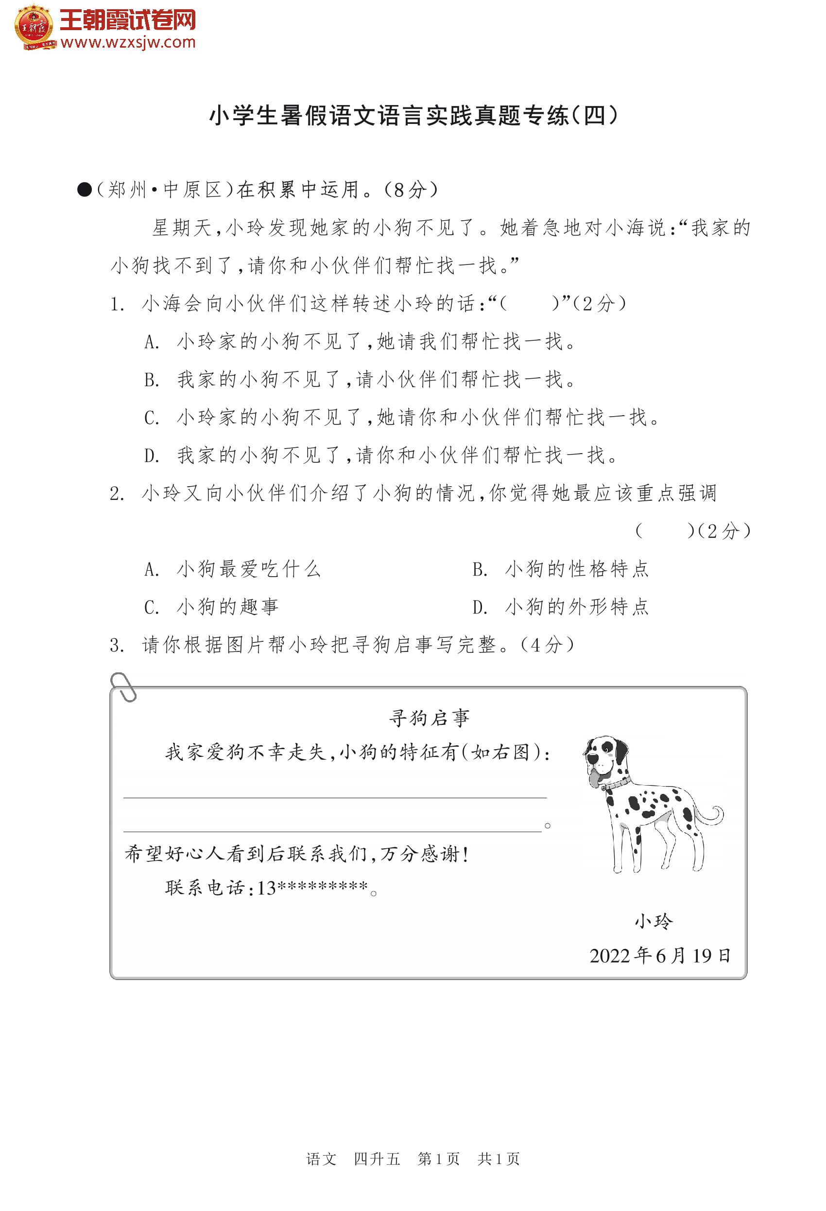 【四升五】小学生暑假语文语言实践真题专练(四)